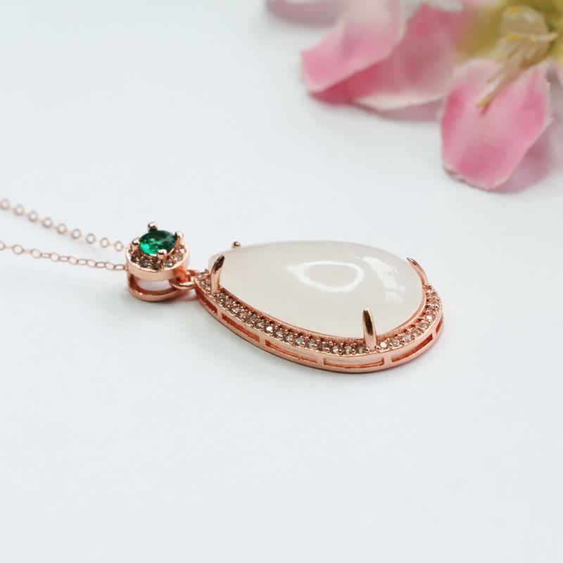 Hetian jade white jade water drop pendant (including alloy chain) ht2100707