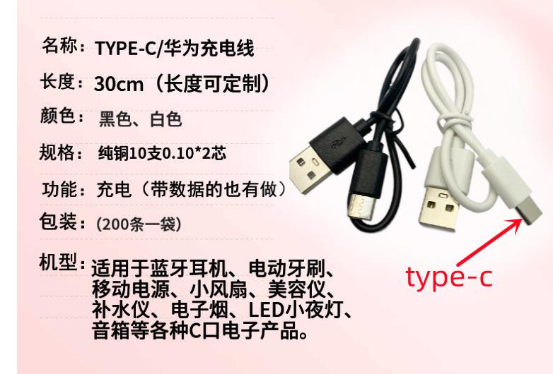 Cable de carga tipo C de 30 cm, cable corto de carga, cable de carga rápida USB tipo C para Huawei Apple 2A tpc