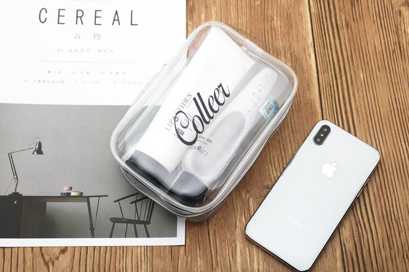 Bolsa de traje de PVC transparente, bolsa promocional de cosméticos de PVC, bolsa de embalaje de plástico de PVC para suministros de baño.
