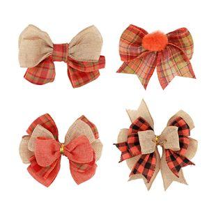 Cinta de lazo de lino de imitación navideña de Amazon Independent Station, venta al por mayor, lazo de lino de imitación a cuadros naranja.