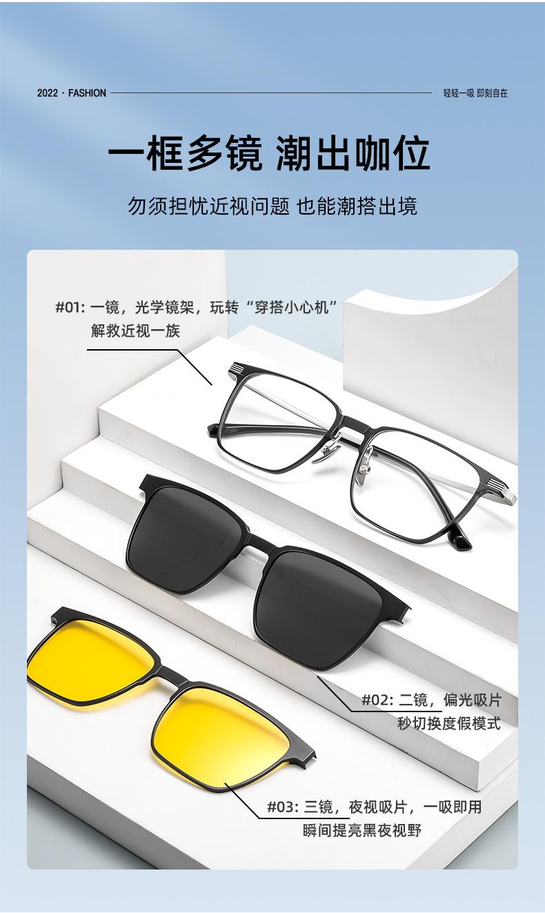 Lentes de sol Danyang 9903 lentes aluminio magnesio magnéticos tres en uno anti-ultravioleta visión nocturna anti-reflejo lentes hombres