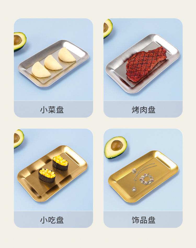 Compra Plato cuadrado de acero inoxidable 304, estilo coreano, dorado, para barbacoa, rectangular, con bandeja para fruta. al por mayor en Joom.pro