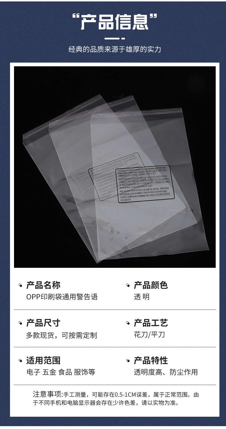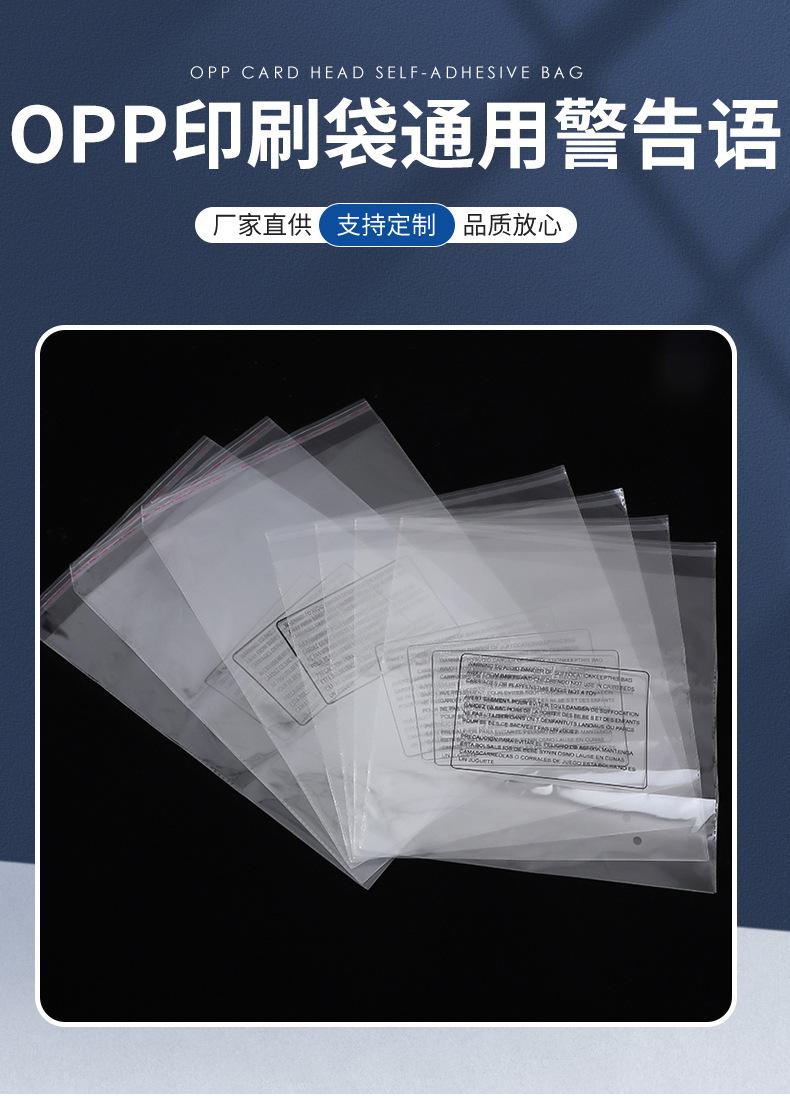 Bolsa de Embalaje de Advertencia Impresa Bolsa Opp Bolsa Pe Bolsa Eva Logotipo Texto Universal Bolsa Autoadhesiva Bolsa Ziplock