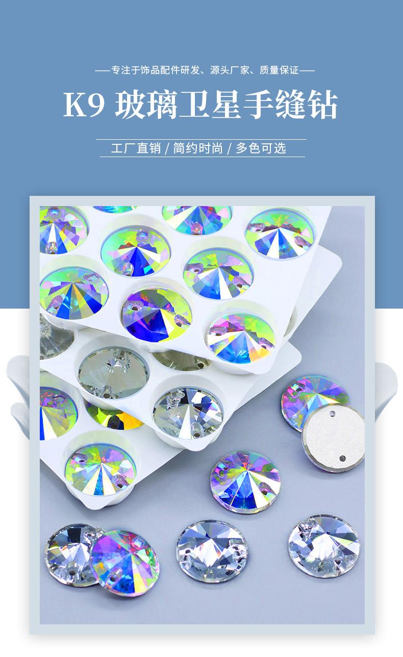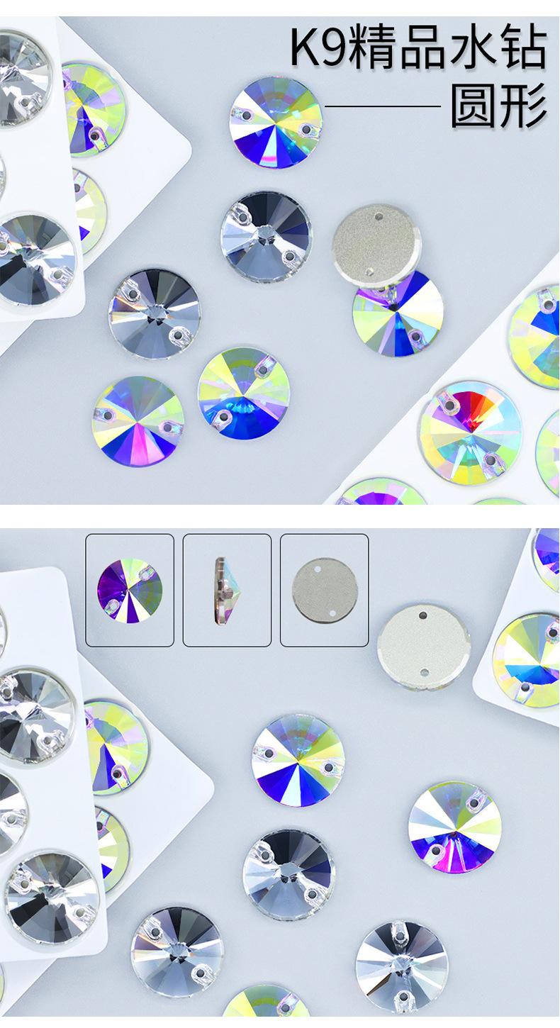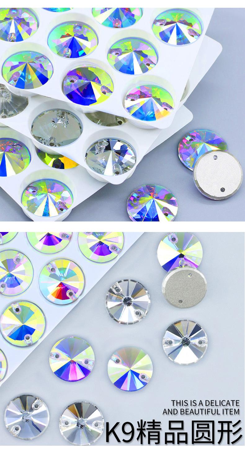 Taladro de costura manual con satélite de vidrio K9, color AB, doble agujero, fondo plano, redondo, para cristal, bricolaje, ropa, boda, accesorios, joyería