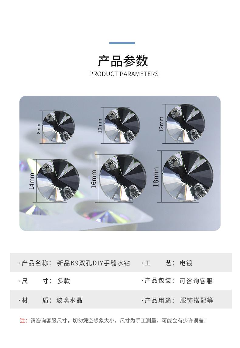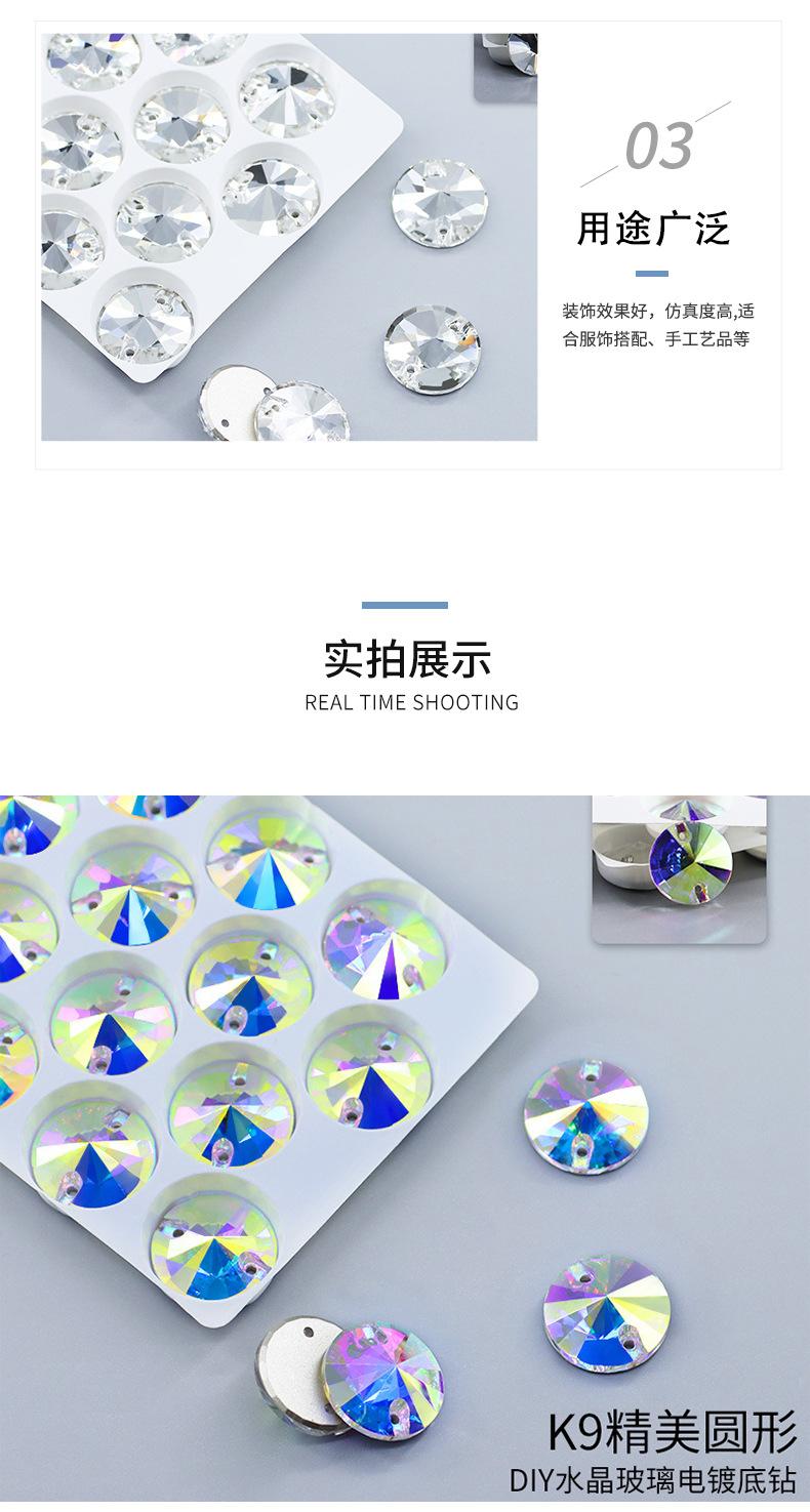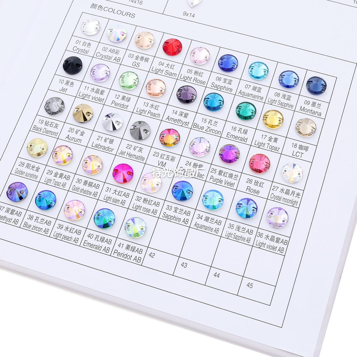 Taladro de costura manual con satélite de vidrio K9, color AB, doble agujero, fondo plano, redondo, para cristal, bricolaje, ropa, boda, accesorios, joyería
