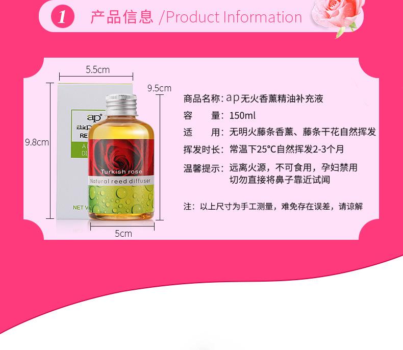 Ap150Ml Recarga Líquida de Aceite Esencial de Aromaterapia sin Fuego Rosa Aceite Esencial de Aromaterapia Fragancia Hogar Lavanda Aceite Esencial de Aromaterapia