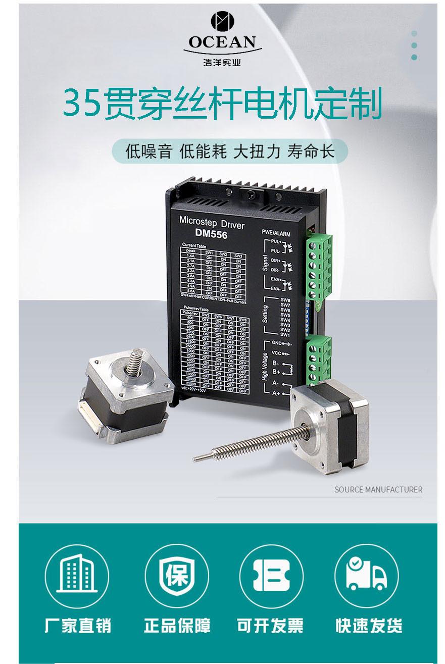 Motor paso a paso de tornillo pasante miniatura 35 personalizado, híbrido, bifásico, de cuatro cables y doble eje de extensión.