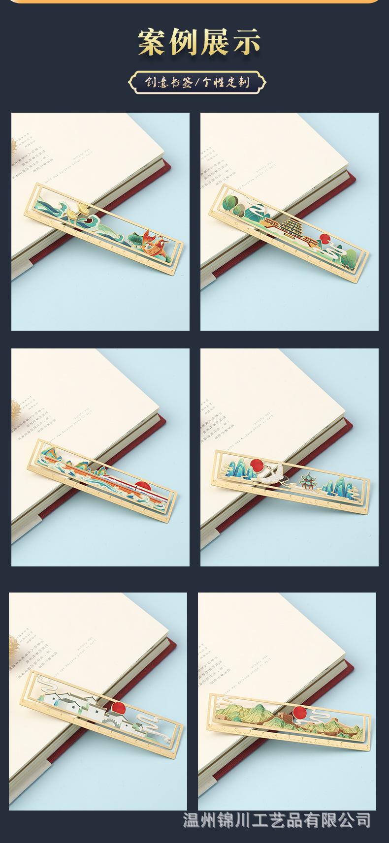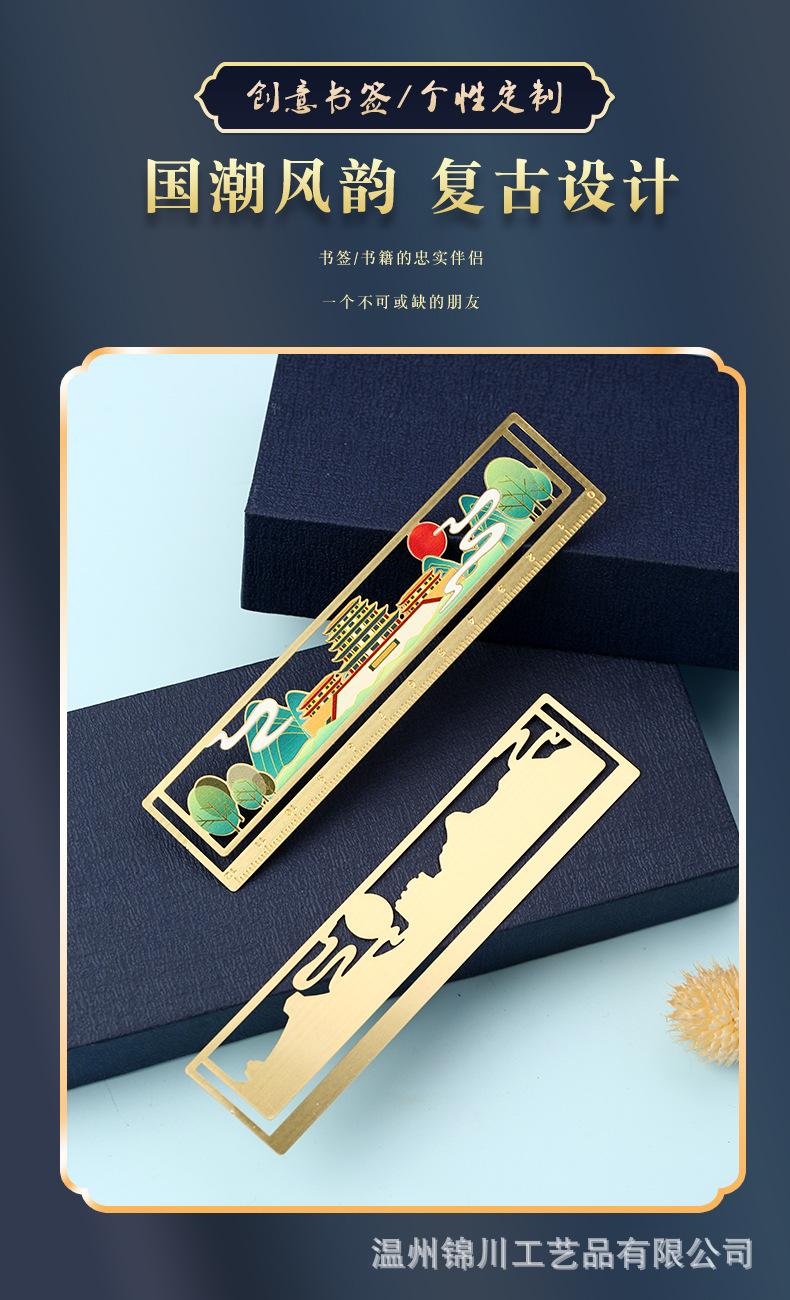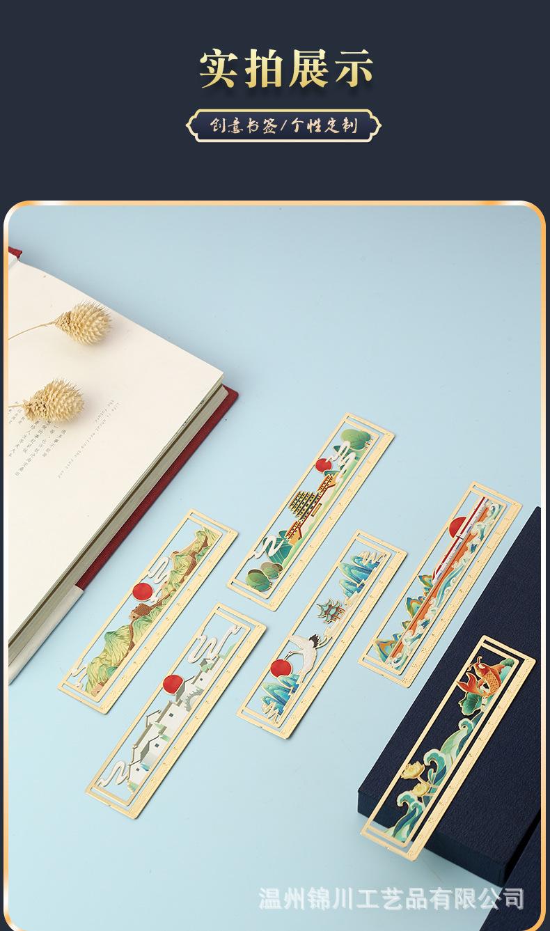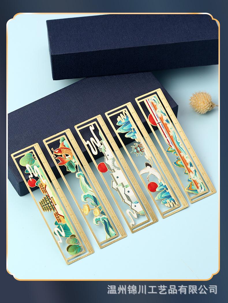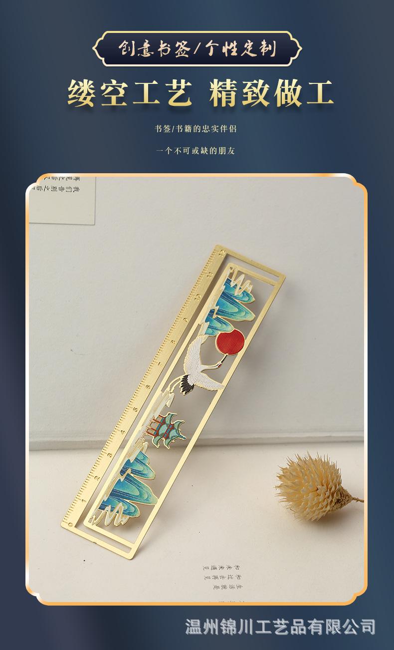Marcapáginas de Metal Calado Personalización Estilo Chino Producción de Regla Wenchuang Pequeño Regalo Creativo Latón Pintado Personalización de Marcapáginas