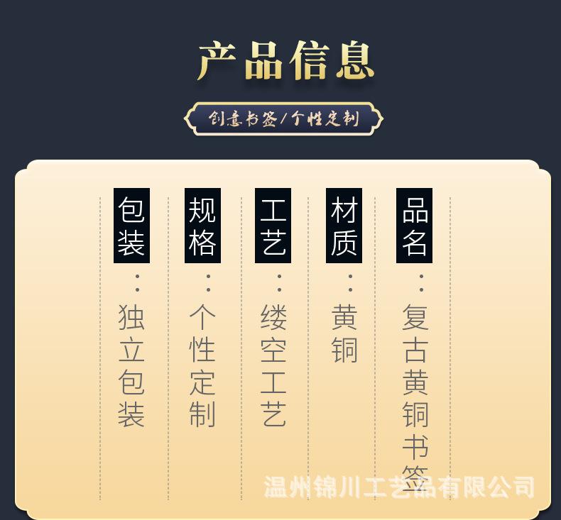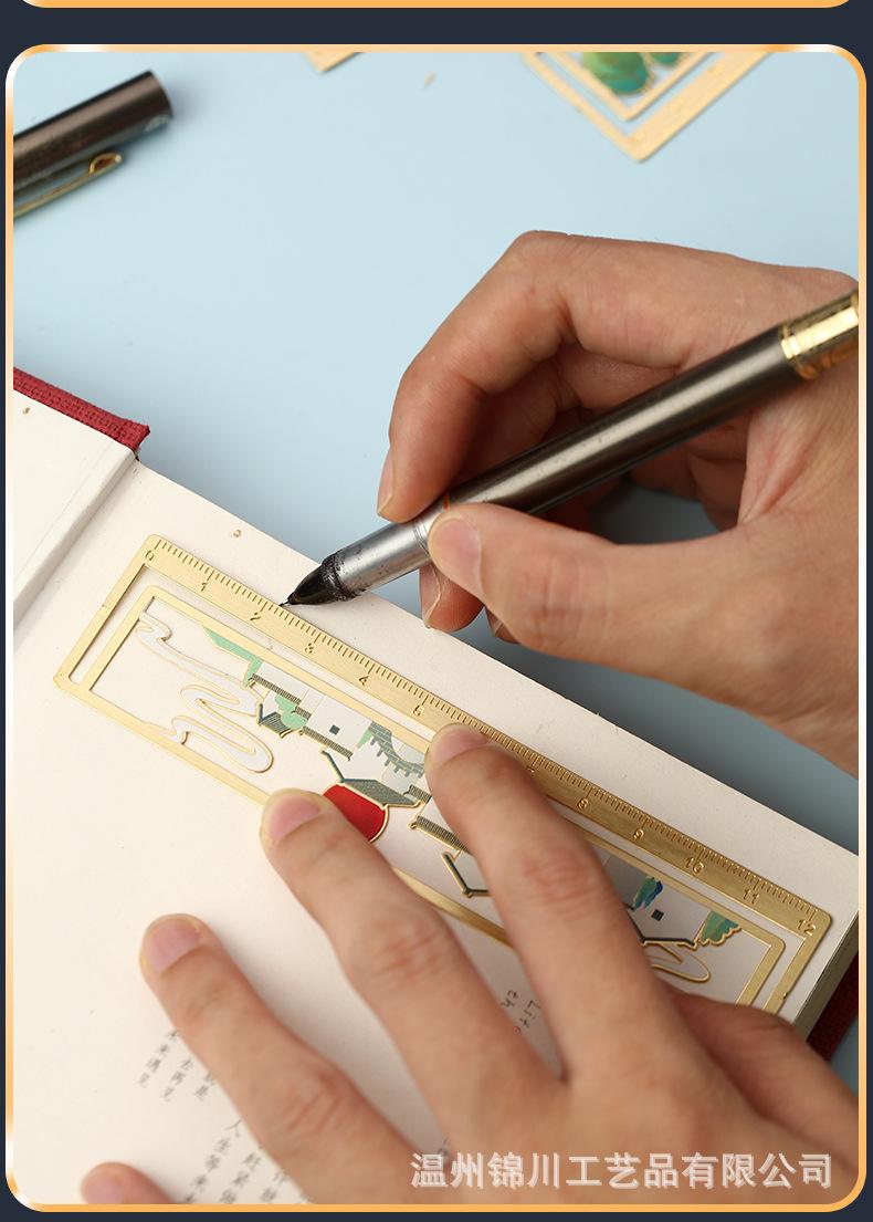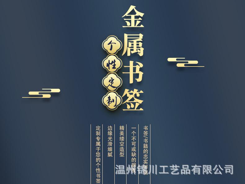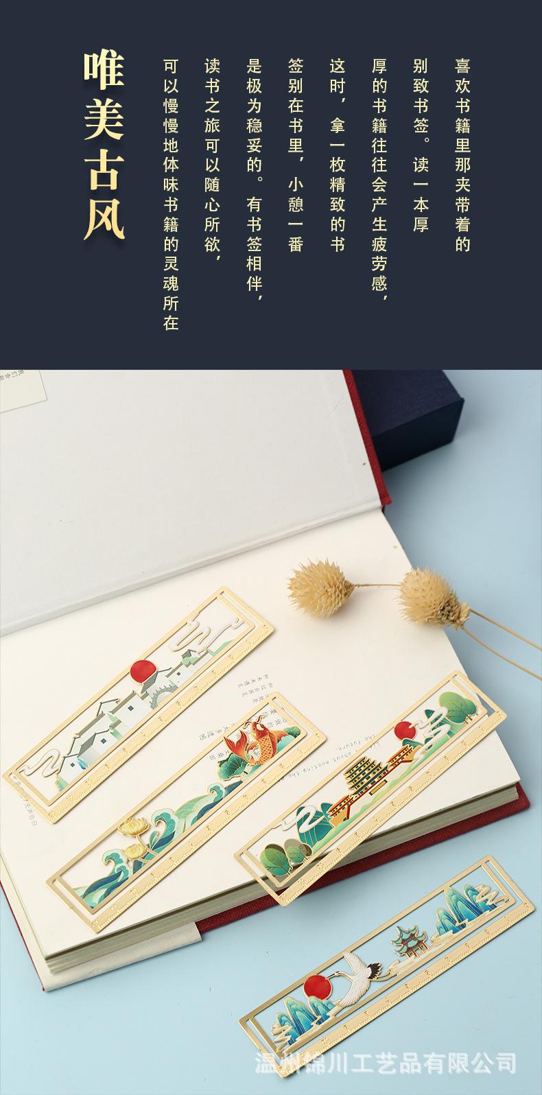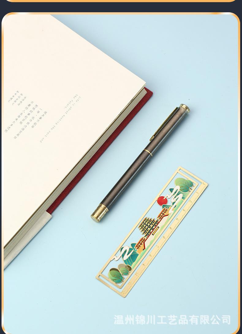 Marcapáginas de Metal Calado Personalización Estilo Chino Producción de Regla Wenchuang Pequeño Regalo Creativo Latón Pintado Personalización de Marcapáginas