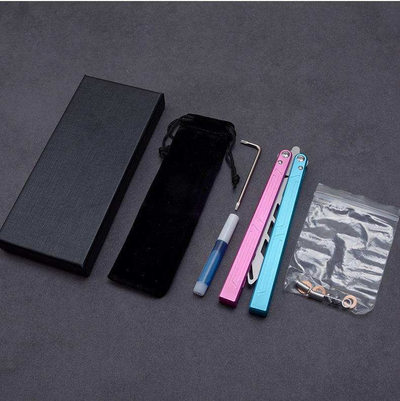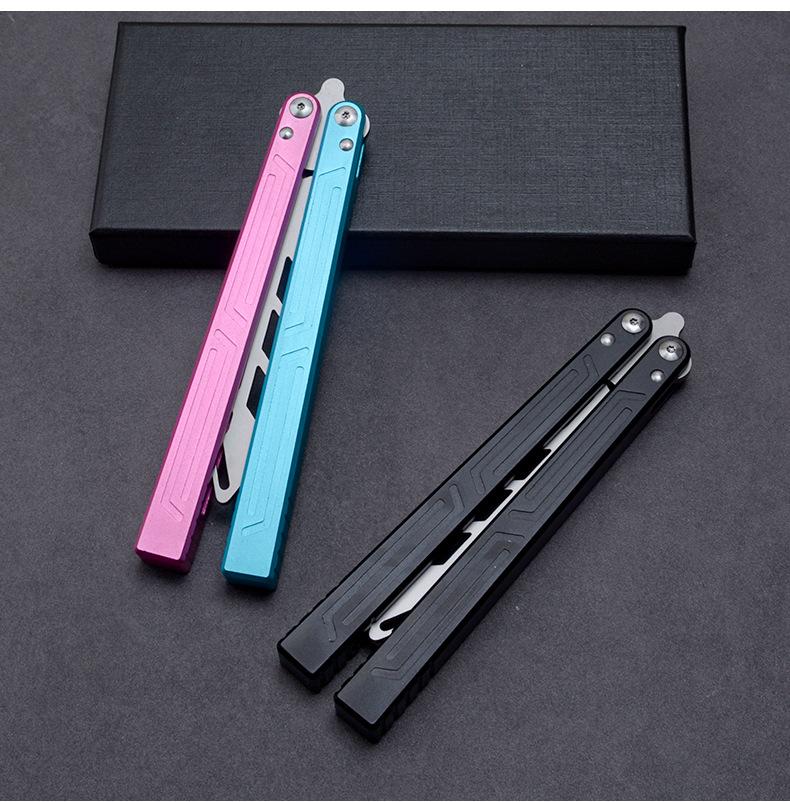 Nuevo cuchillo de mariposa con hoja no abierta, cuchillo de práctica con mango de aleación de aluminio antideslizante y funda de eje integrada, cuchillo oscilante elegante, herramienta de entrenamiento para principiantes