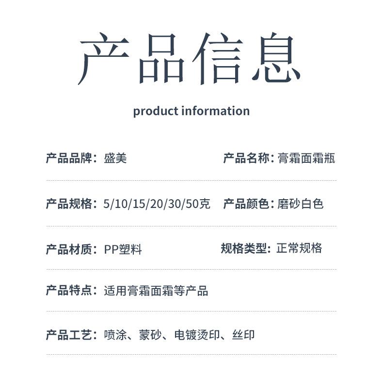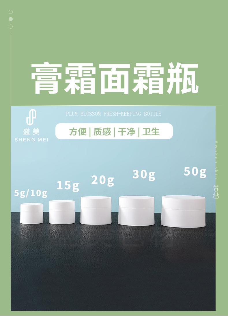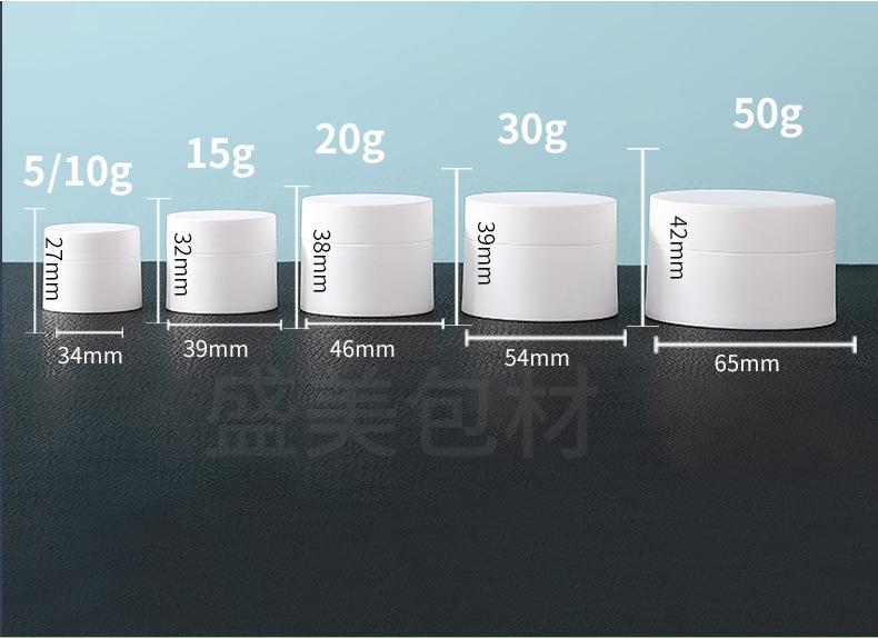 En stock, botella de crema de PP de doble capa de 5-50 g, botella de crema, botella de plástico, botella de boca ancha, botellas cosméticas de prueba.