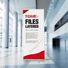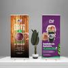 Soporte enrollable de exhibición de aleación de aluminio personalizado de fábrica, soporte enrollable de estilo clásico para exportación con patas de plástico.