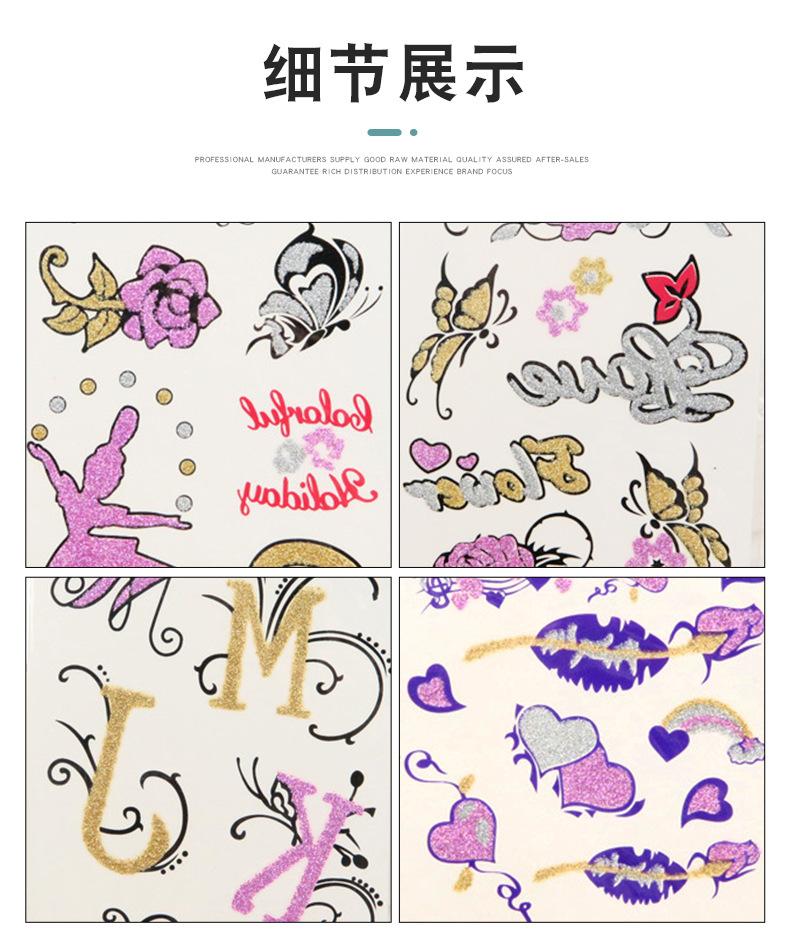 Pegatinas de tatuaje de hierbas semipermanentes, resistentes al agua, de simulación, de dibujos animados, creativas, con purpurina, suministro de fábrica.