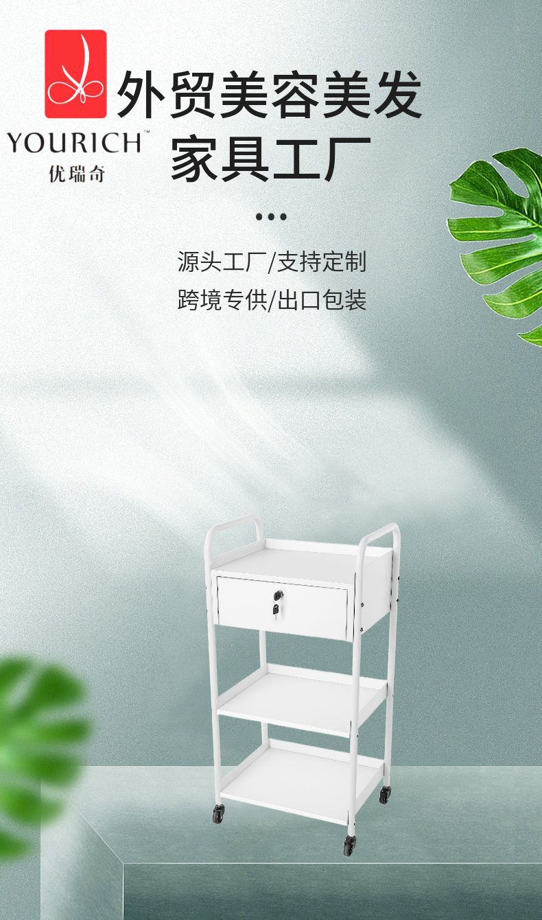 Carrito de belleza, carrito de herramientas para peluquería, estante de almacenamiento, carrito de hierro y madera, gabinete de herramientas para barbería, carrito de belleza móvil