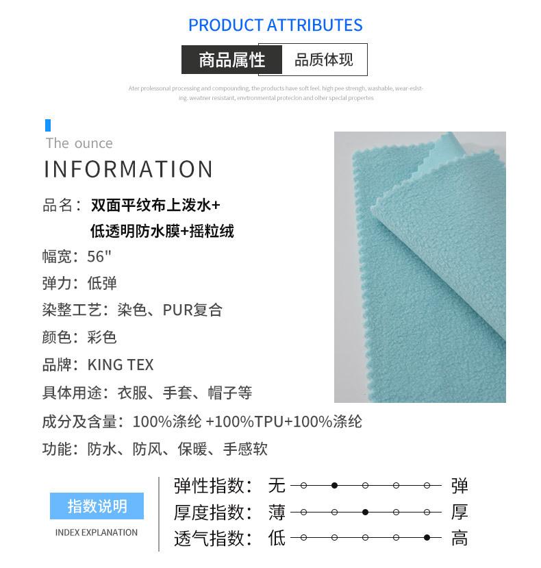 Forro Polar Compuesto Tpu Impermeable y Cálido Fabricante Venta al por Mayor Elástico en Cuatro Direcciones Transpirable Chaqueta Delantera Material para Ropa de Montañismo