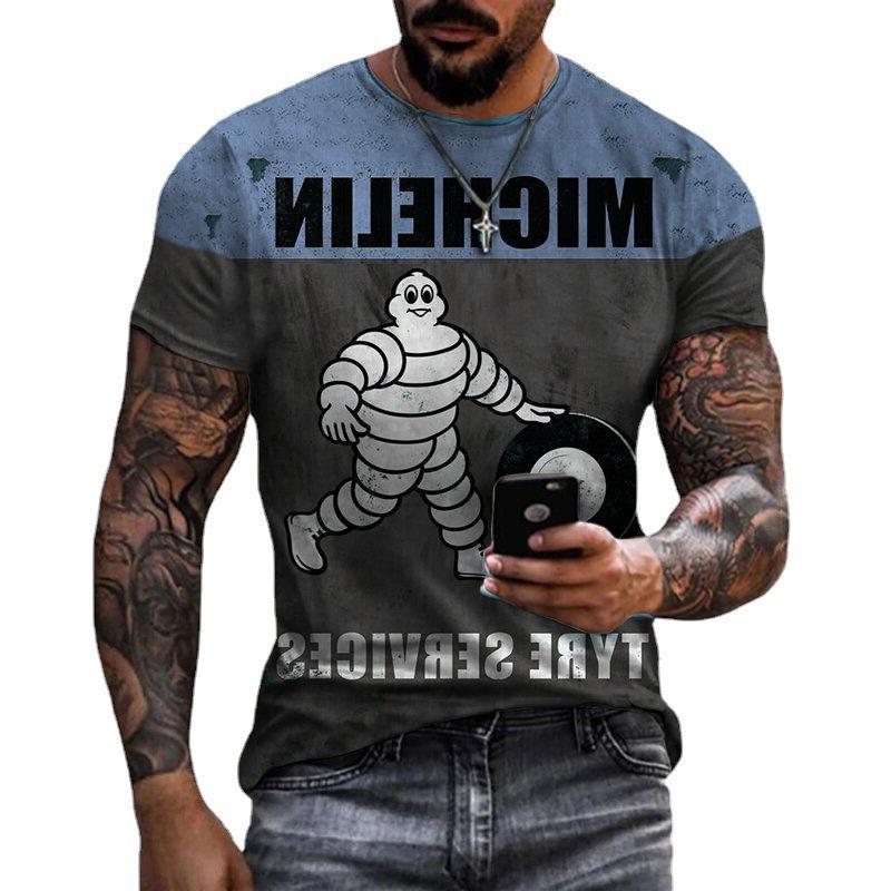 Camisa 3DT de manga corta con estampado retro ajustado de verano para hombre de estación independiente de comercio exterior de gran tamaño de Europa y Estados Unidos una generación de cabello