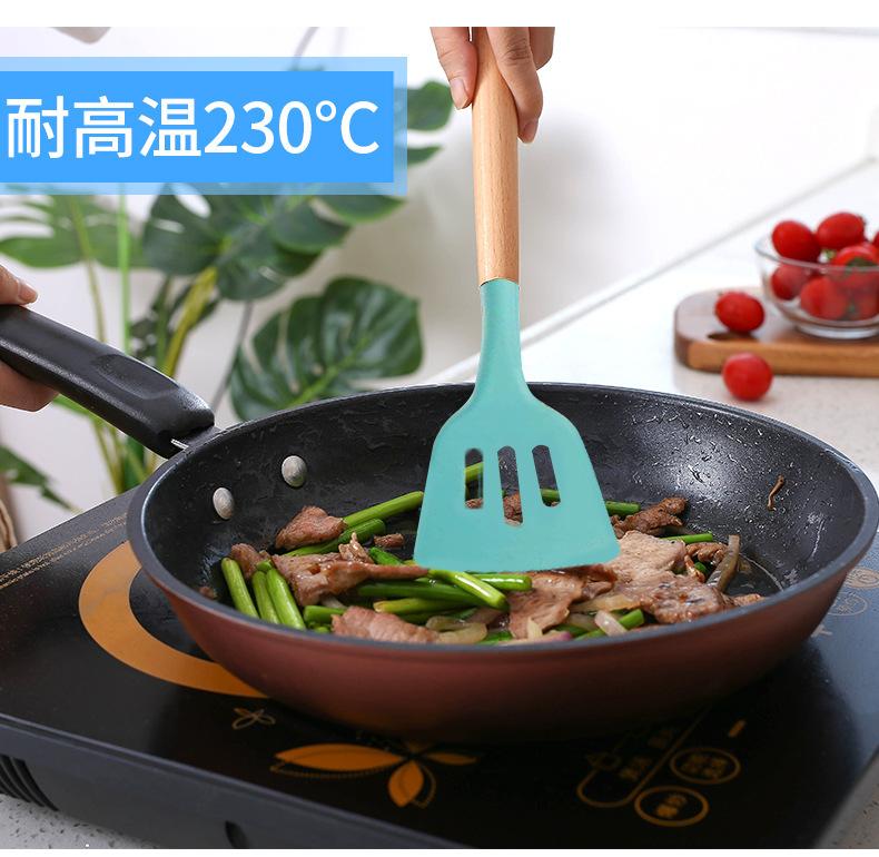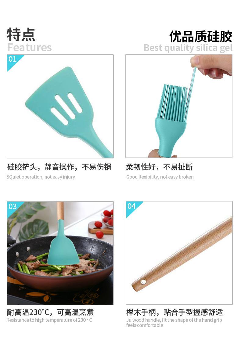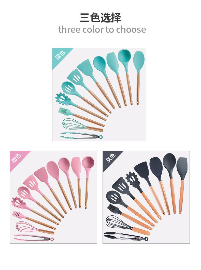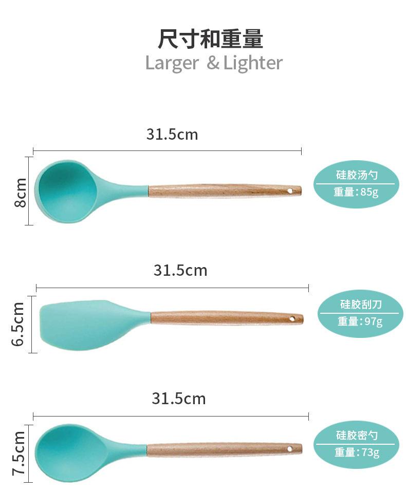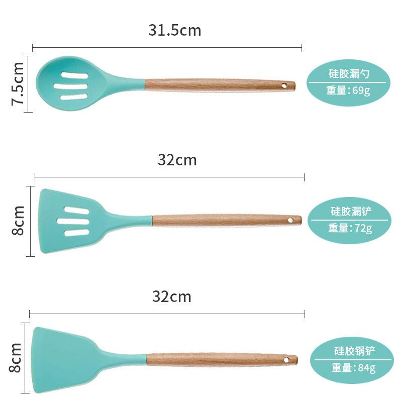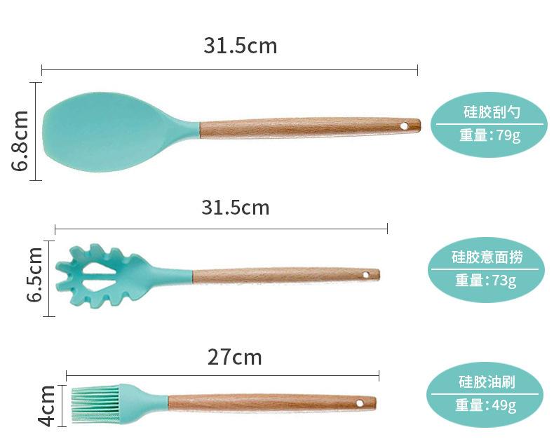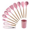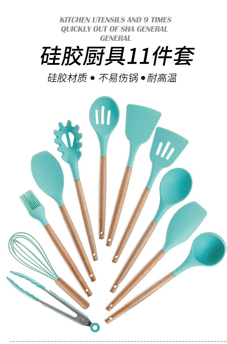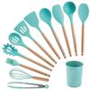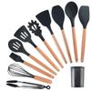 Utensilios de cocina de silicona con mango de madera, 12 piezas, pala antiadherente, utensilios de cocina, pala para cocinar, cuchara para hornear, juego de Amazon Supply