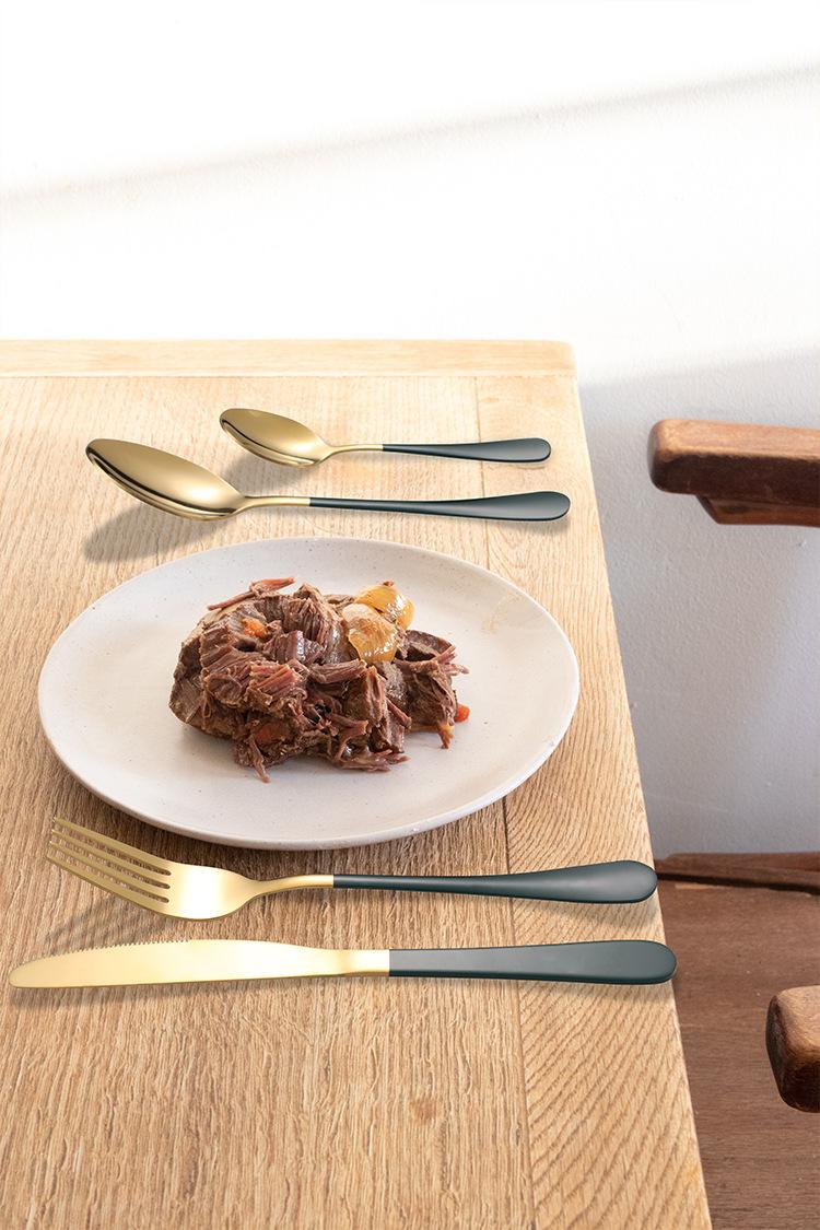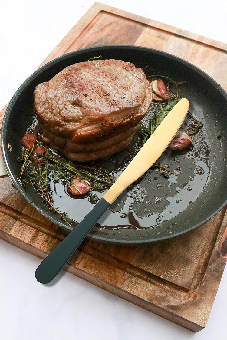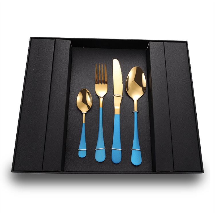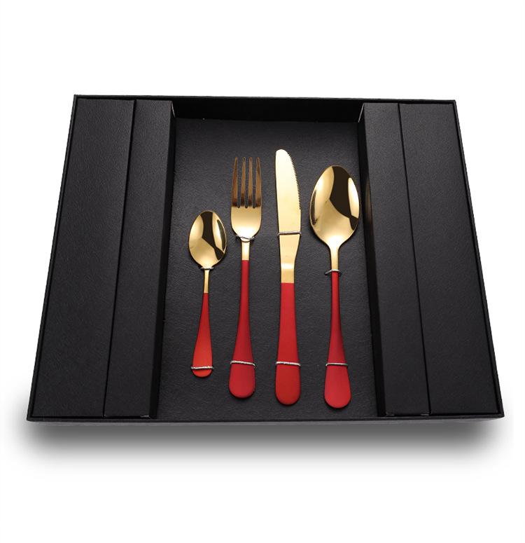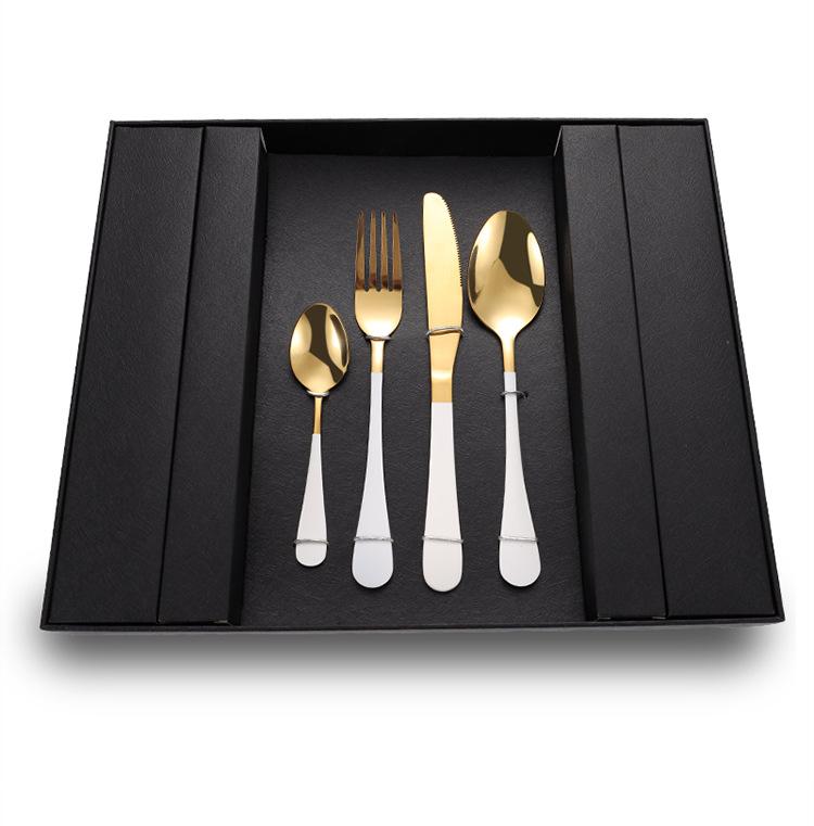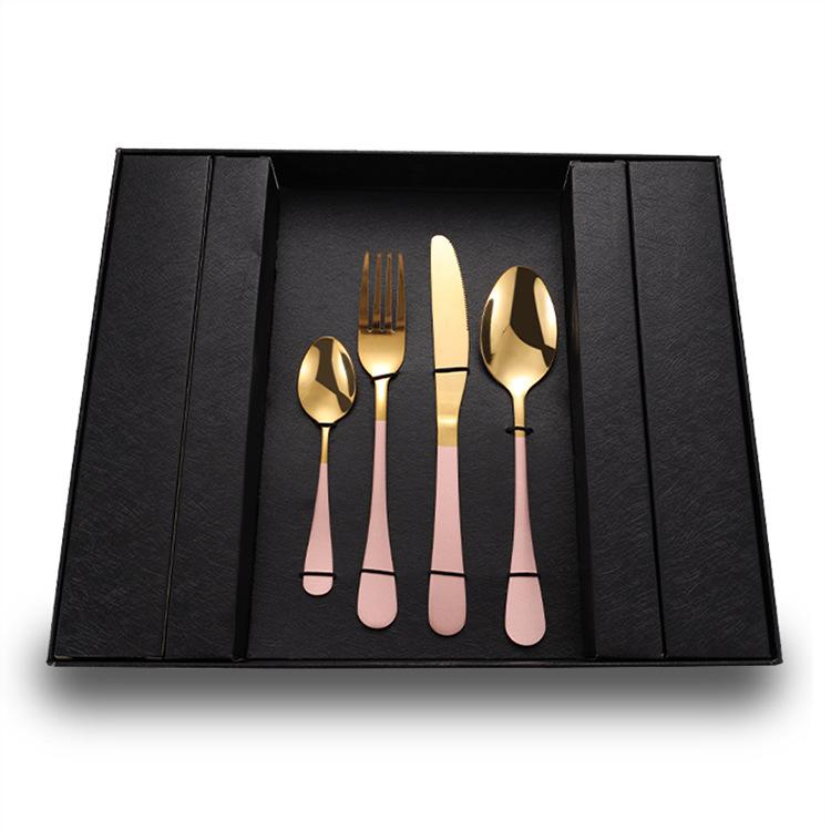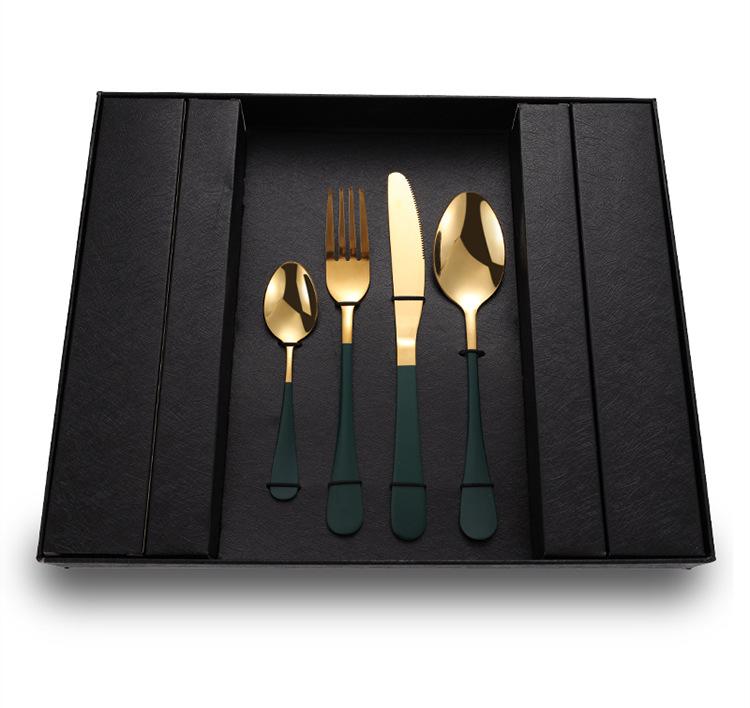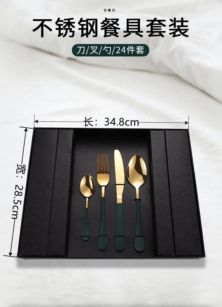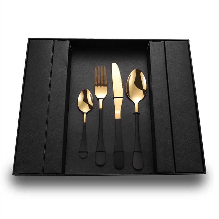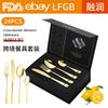 Juego de 24 cuchillos, tenedores y cucharas para carne de acero inoxidable transfronterizos en stock, caja de regalo negra para el hogar, vajilla occidental.