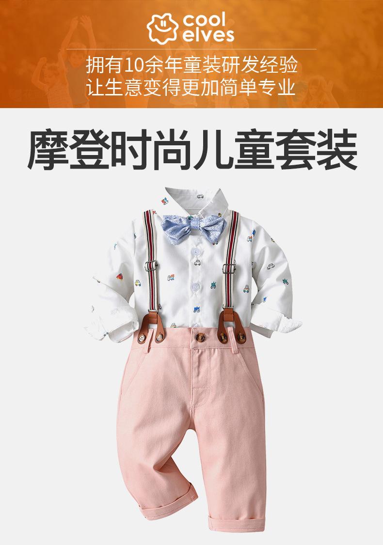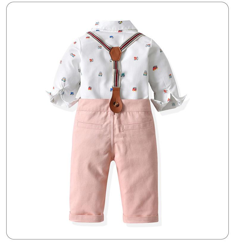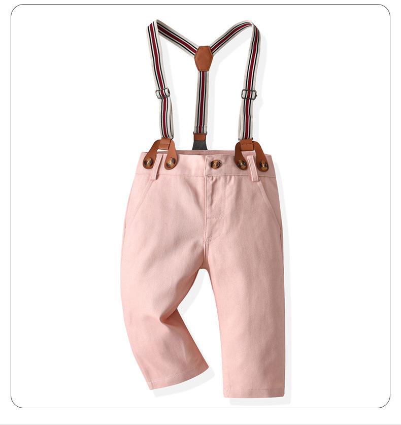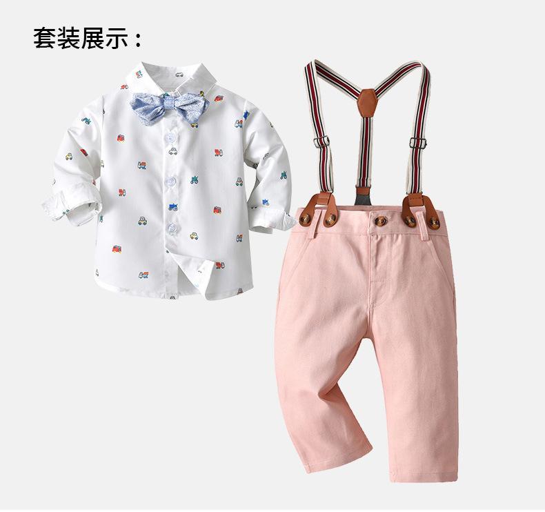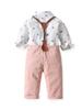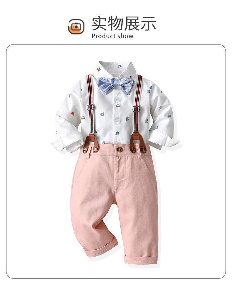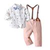 Venta al por mayor de ropa infantil transfronteriza, tirantes de caballero británico, ropa de bebé de dos piezas, traje de manga larga de primavera para niños