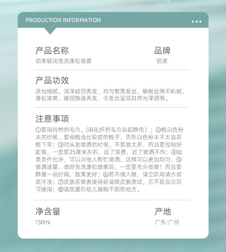 Spray hidratante ligero Bai Beam, sin necesidad de lavado, para cabello esponjoso, cuidado capilar, spray hidratante para personas perezosas, sin necesidad de lavado, con aire esponjoso.