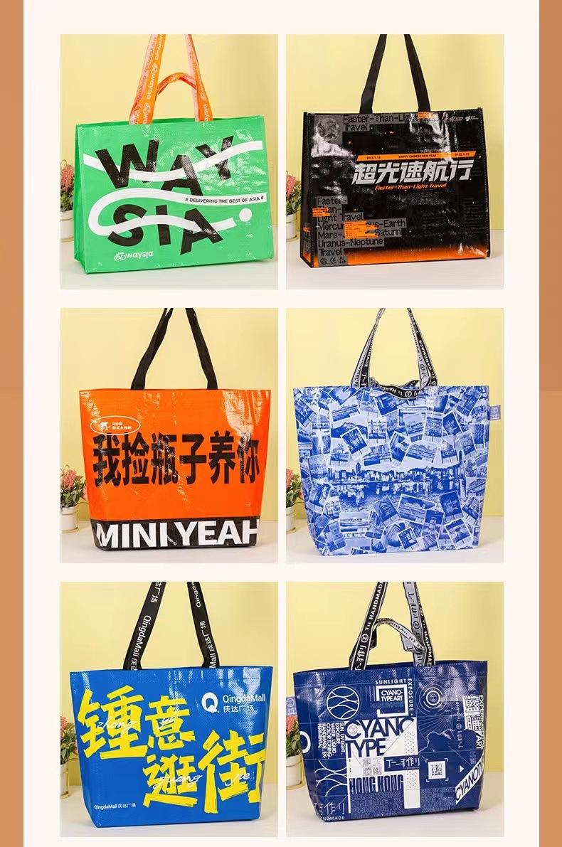 Bolso de mano tejido de polipropileno, laminado, personalizado, con logotipo personalizado, de piel de serpiente, tejido de plástico compuesto e impresión a color.