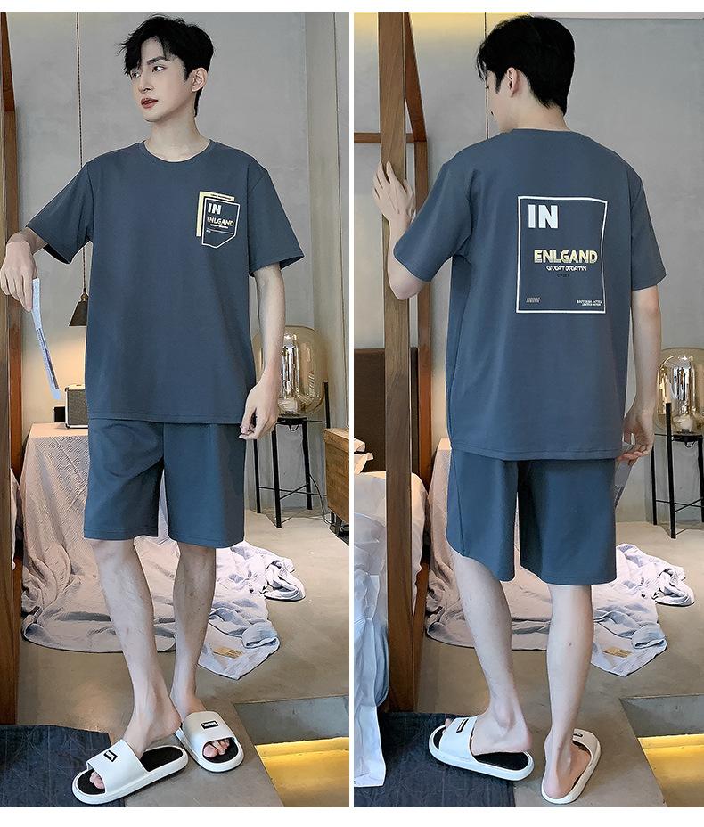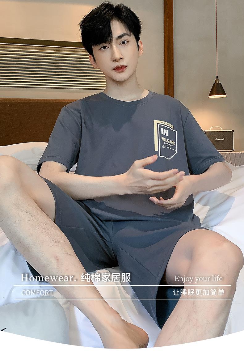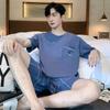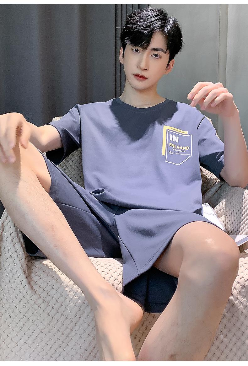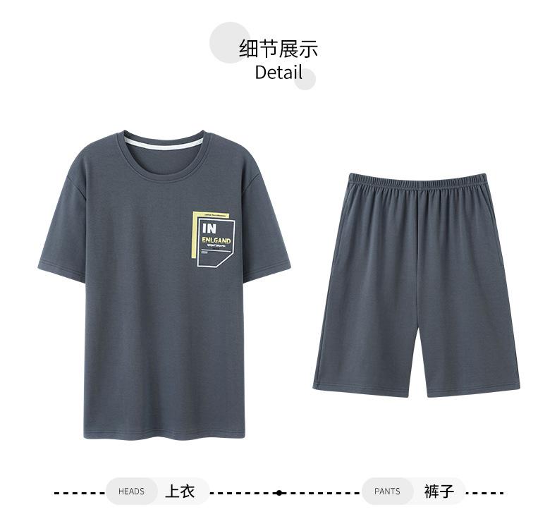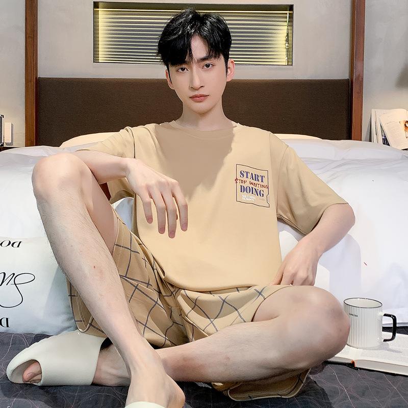 Pijama de Algodón Puro para Hombre Verano de Manga Corta y Pantalón Corto Se Puede Usar Fuera del Traje Simple Casual Talla Extra Ropa Fresca para el Hogar para Hombre