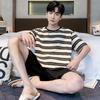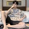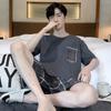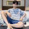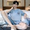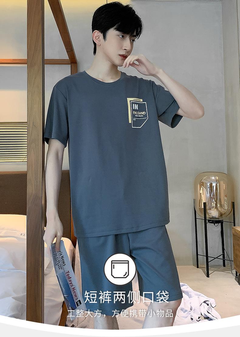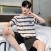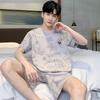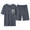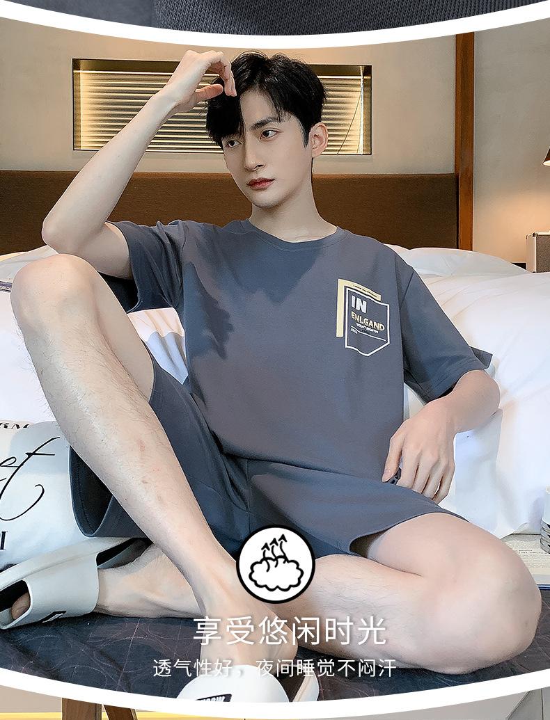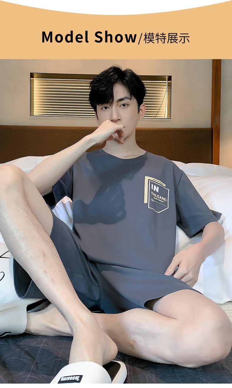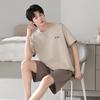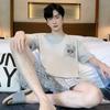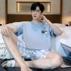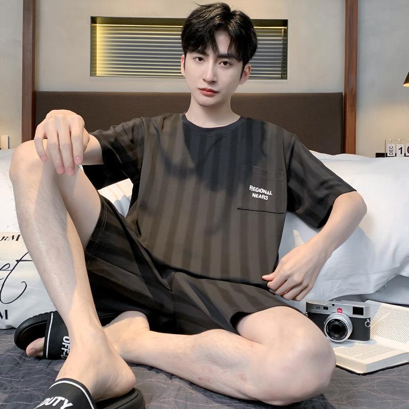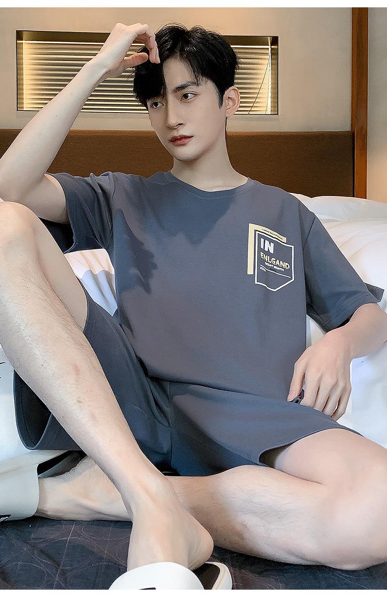 Pijama de Algodón Puro para Hombre Verano de Manga Corta y Pantalón Corto Se Puede Usar Fuera del Traje Simple Casual Talla Extra Ropa Fresca para el Hogar para Hombre