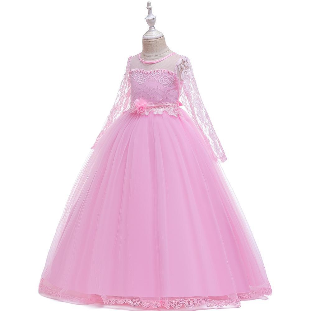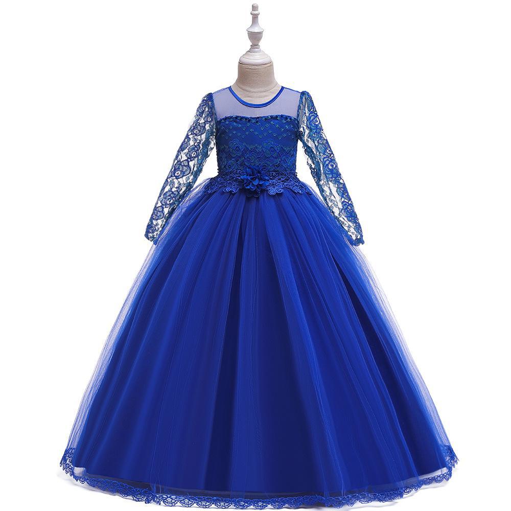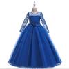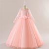 Nuevo vestido de fiesta navideño transfronterizo para niñas de mediana edad y mayores, vestido de princesa de malla abullonada de manga larga con estampado floral para hermanas y niñas de las flores