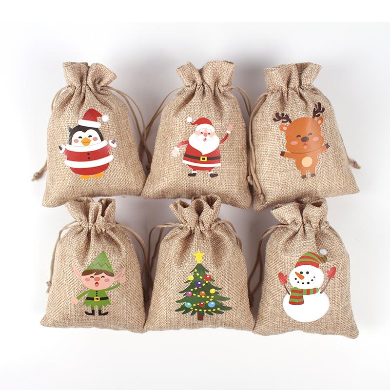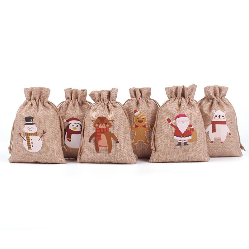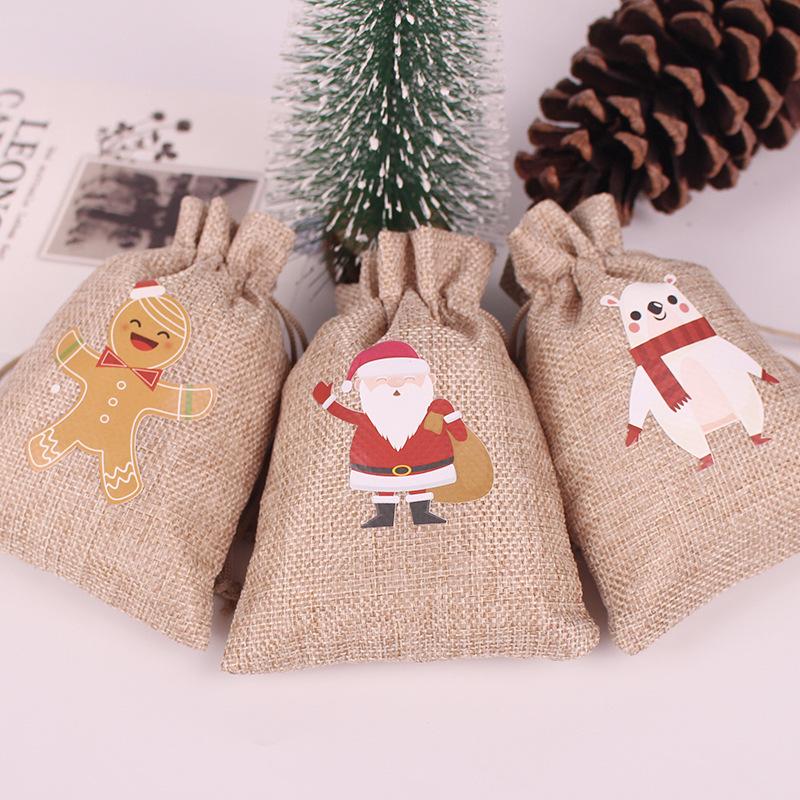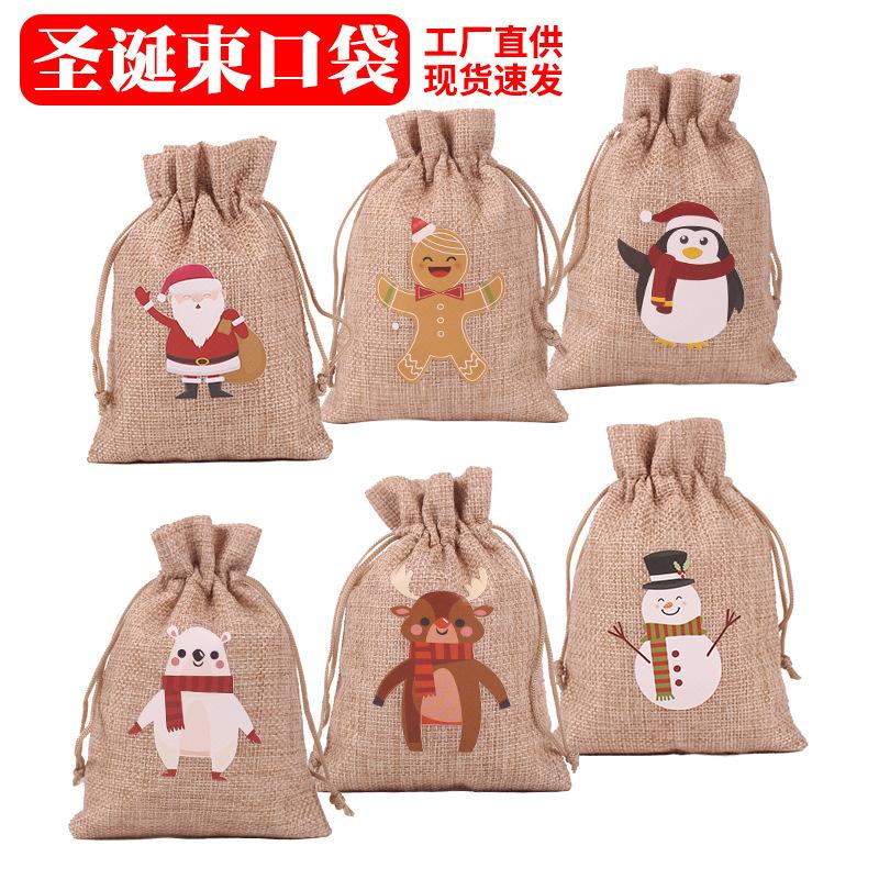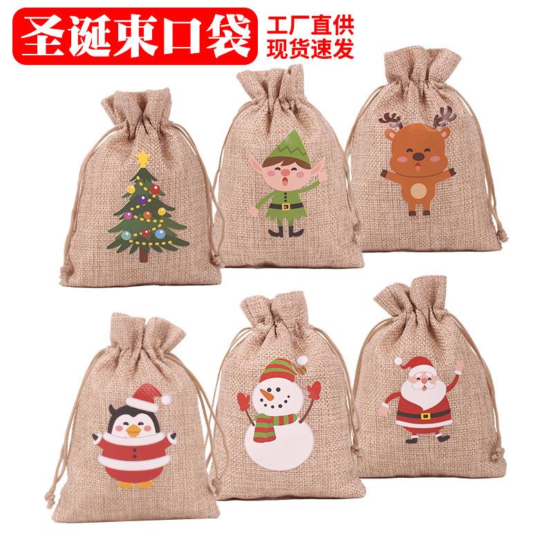 Nombre del producto: Bolsa de lino navideña con cordón