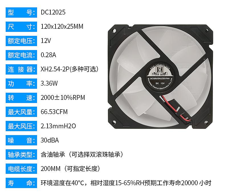 Ventilador de refrigeración DC12025 ventilador de color luminoso purificador de aire de gran volumen de aire interruptor de host de computadora