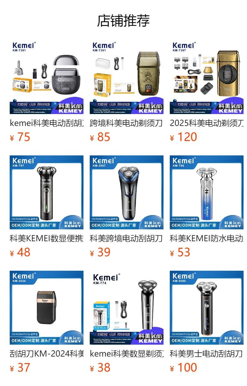 Afeitadora Eléctrica Impermeable Kemei Transfronteriza Carga USB Cabezal Flotante Afeitadora Desmontable Km1308