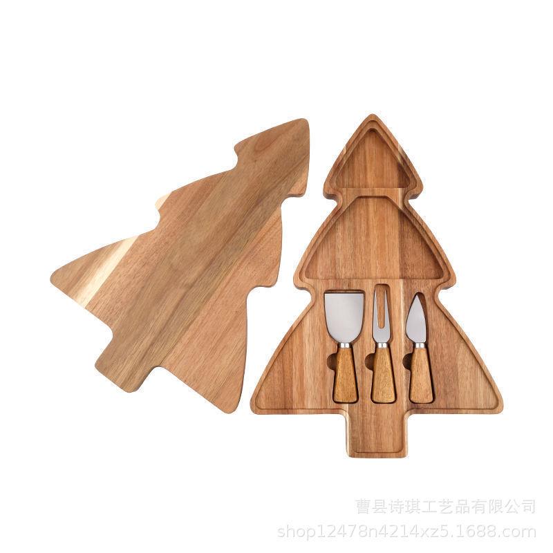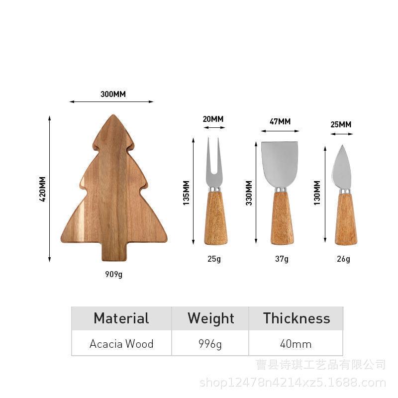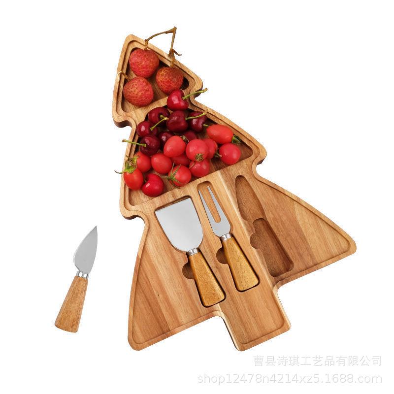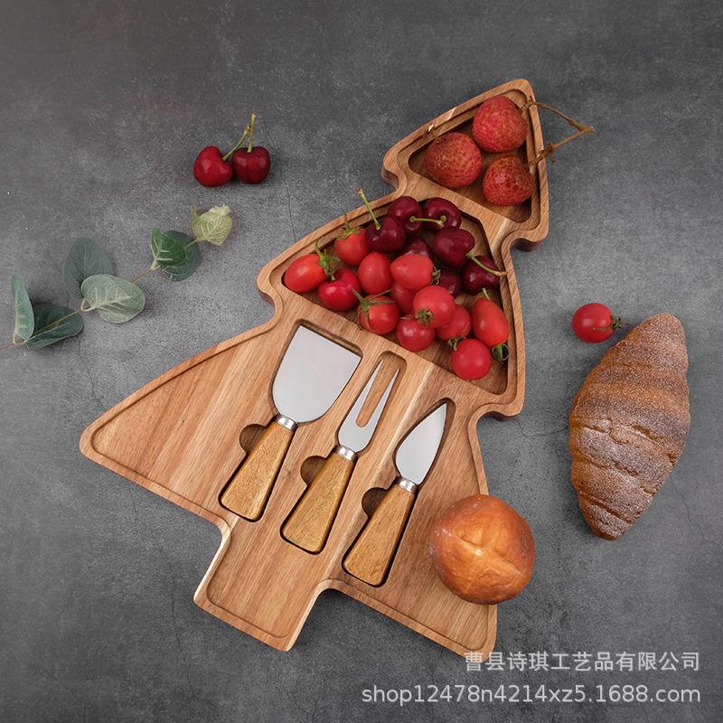 Bandeja de Madera de Acacia Set Tabla de Corte para Queso Suministros de Cocina Tabla de Quesos con Cuchillo y Tenedor Bandeja de Almacenamiento Creativa Suministro Directo de Fábrica