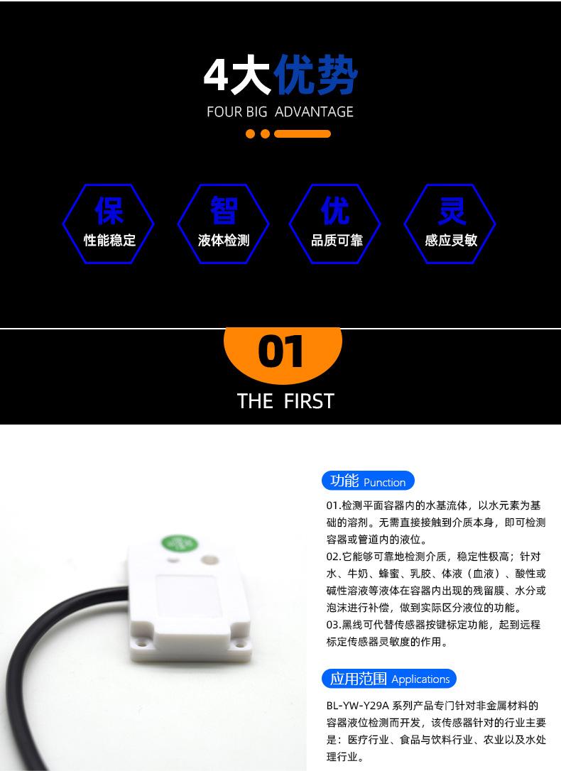 Sensor de nivel de líquido sin contacto BL-YW-Y29A sensor de disparo por inducción de líquido para tanque de agua externo