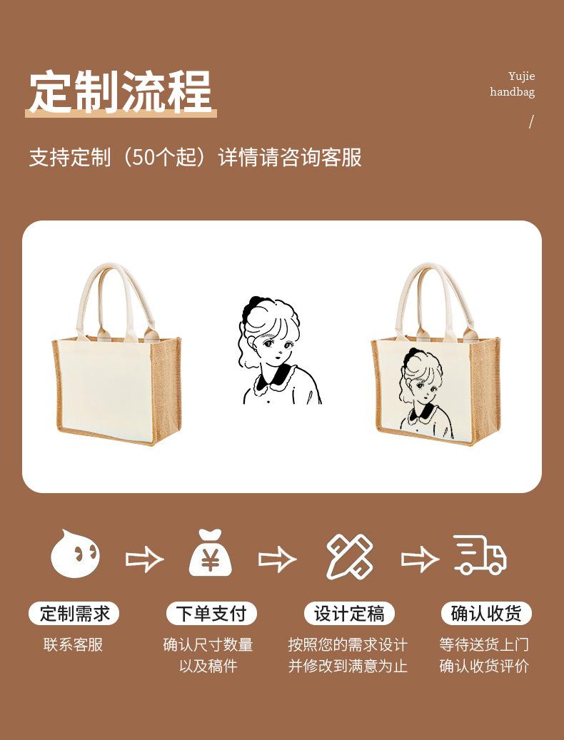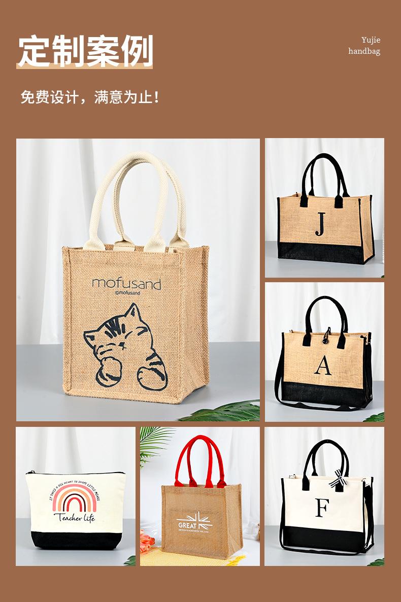 Fabricante de Bolsas de Lino Venta al por Mayor Lino Retro Popular Mismo Estilo Bolso de Mano Bolsa de Compras para Estudiantes Bolsa de Lino Logotipo Personalizado