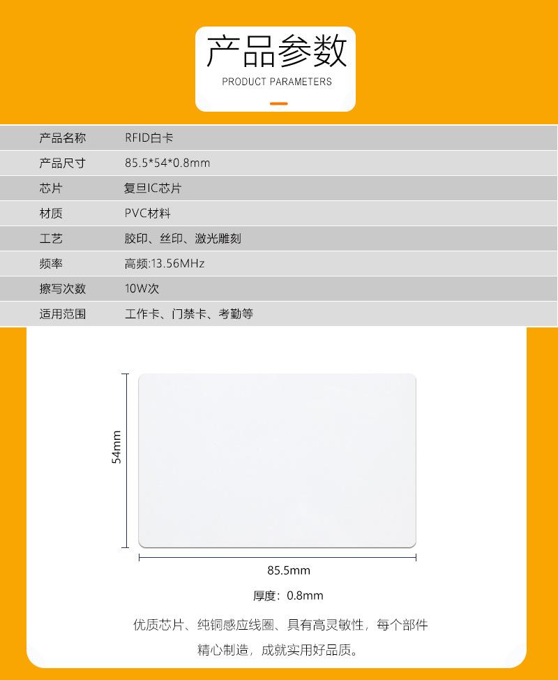 tarjeta blanca IC, tarjeta blanca ID de control de acceso, tarjeta blanca NFC, tarjeta blanca IC Fudan