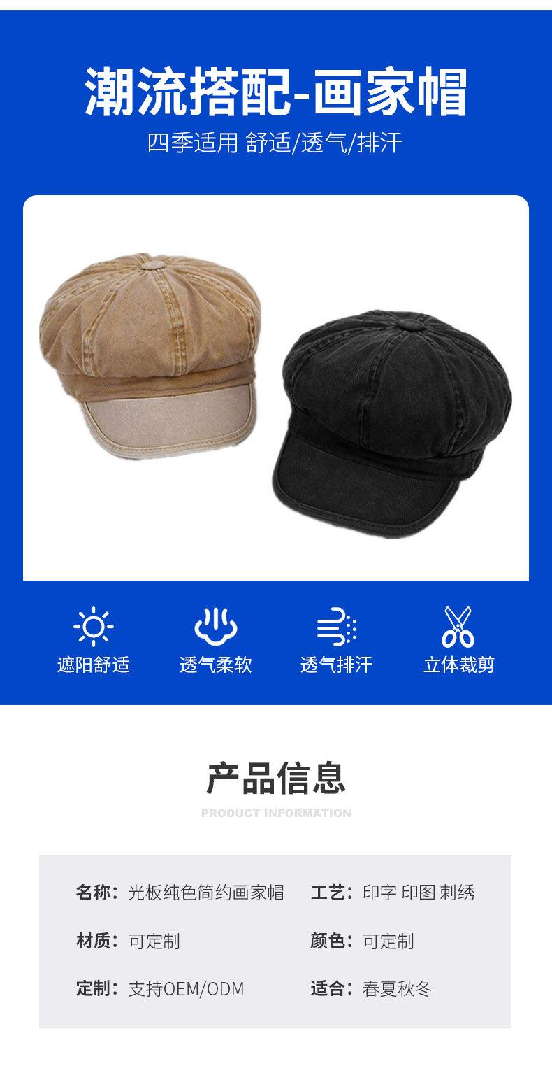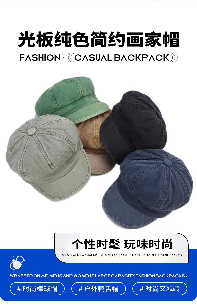 Sombreros Octogonales Retro Lavados para Hombre y Mujer Color Sólido Boina Simple Llanos Color Sólido Simple Sombrero de Pintor Venta al por Mayor