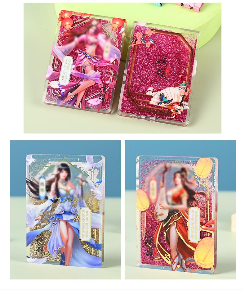 Acrílico arena movediza mahjong anime estrella periférico tarjeta de pie adornos pequeños de escritorio arena movediza de aceite intercapa tarjeta de pie diy