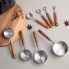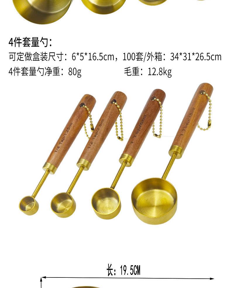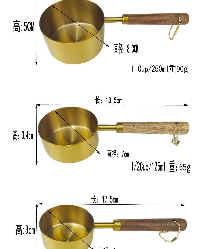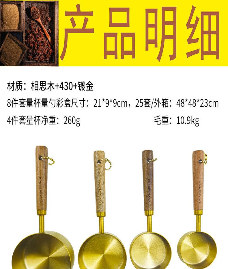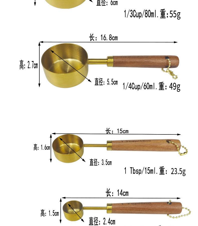 Taza medidora de acero inoxidable cuchara medidora juego de 8 piezas chapado en oro taza medidora cuchara medidora mango de madera de acacia horneado con escala traje de medición
