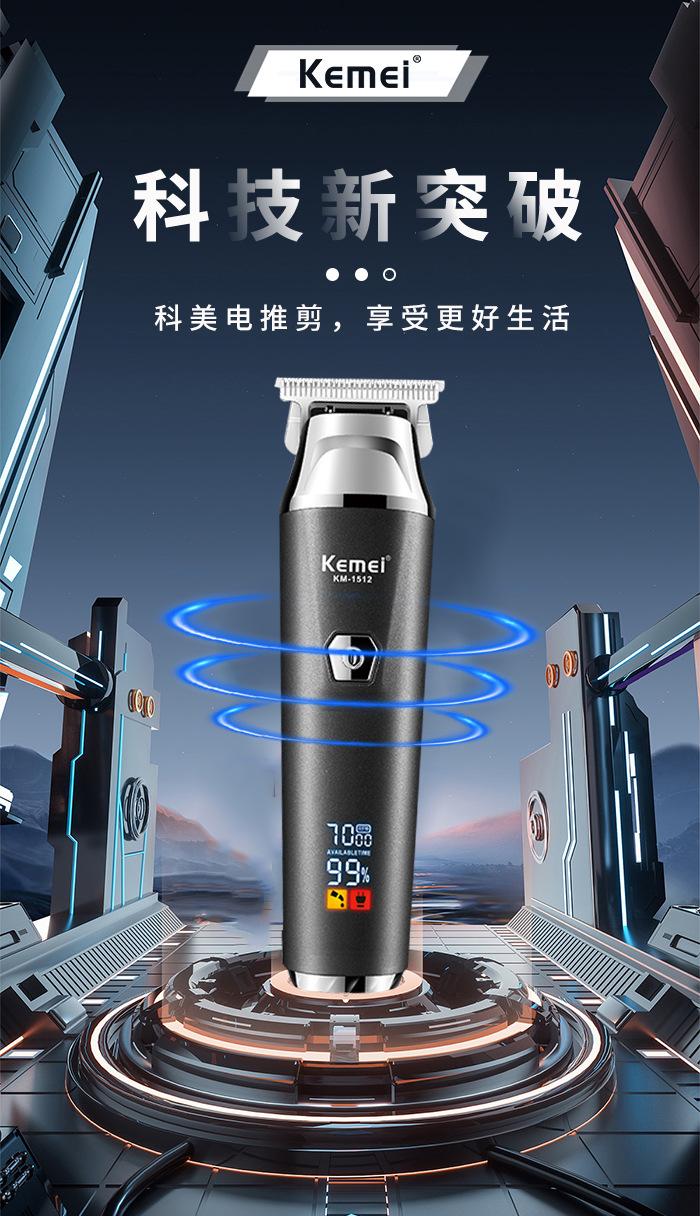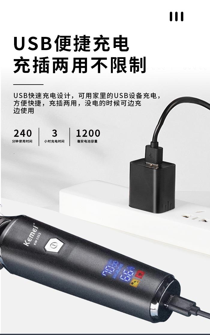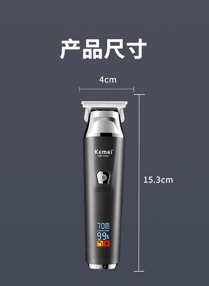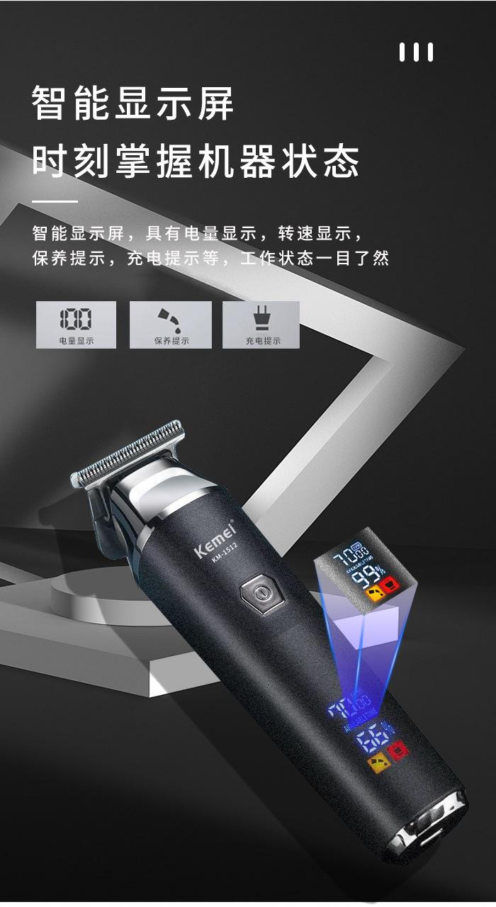 Kemei Cortadora de Pelo Eléctrica para el Hogar con Pantalla Digital, Carga Rápida USB, Recortadora para Esculpido de Cabeza Rapada, Afeitadora de Cabeza Rapada