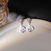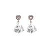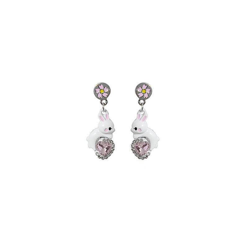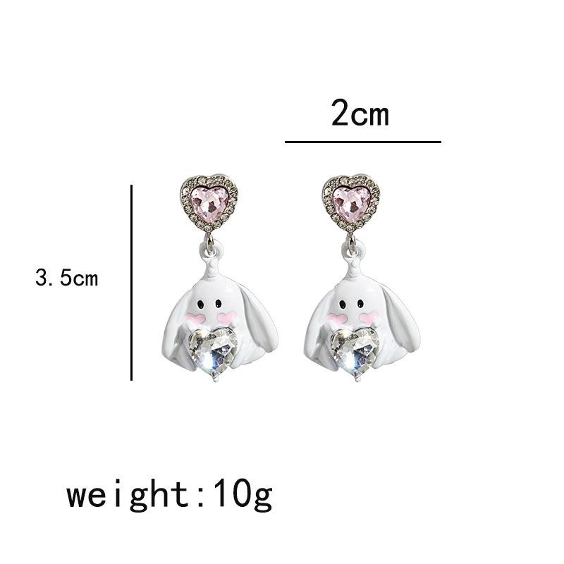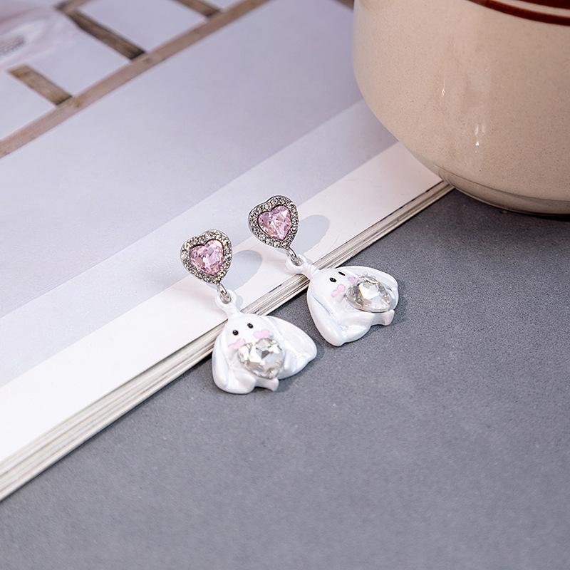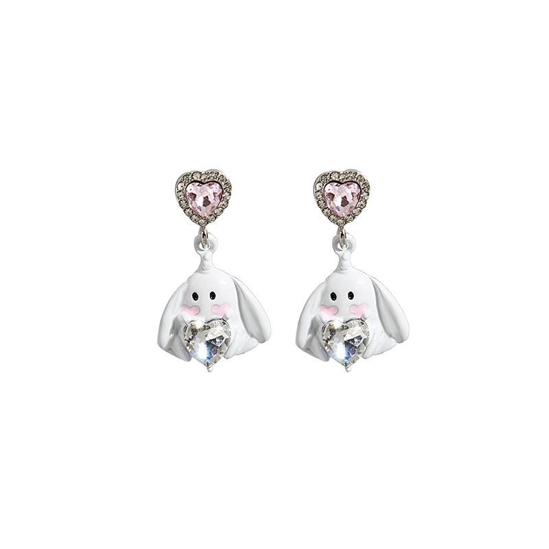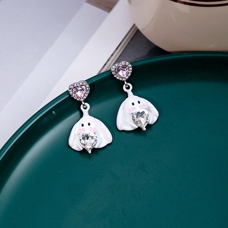 Pendientes de aguja de plata con forma de conejito blanco lechoso, bonitos y bonitos, con flores incrustadas con diamantes, para mujer.