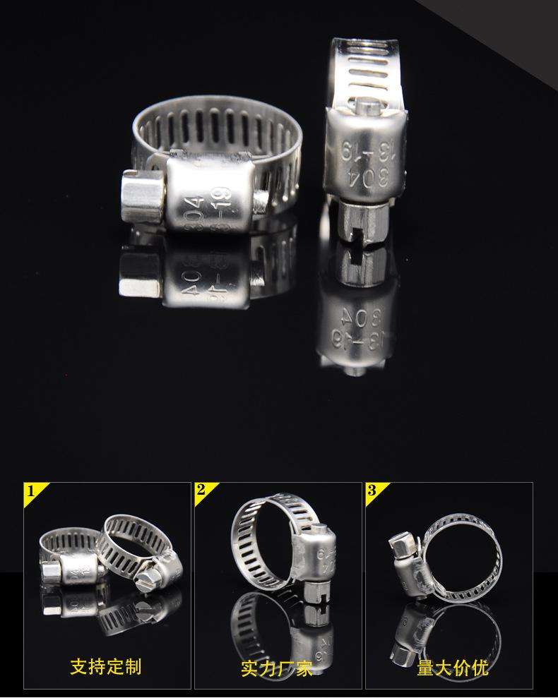 Semi-steel cross hose clamp 6-12, Semi-steel cross hose clamp 10-16, Semi-steel cross hose clamp 13-19, Semi-s...