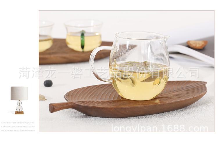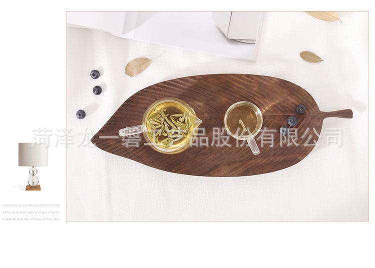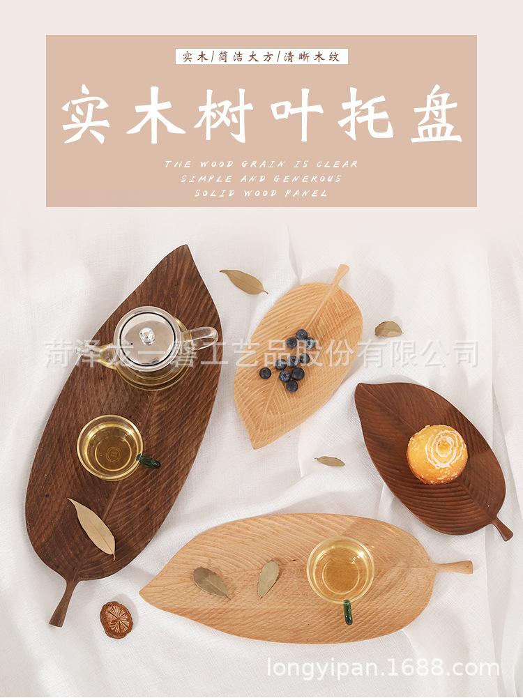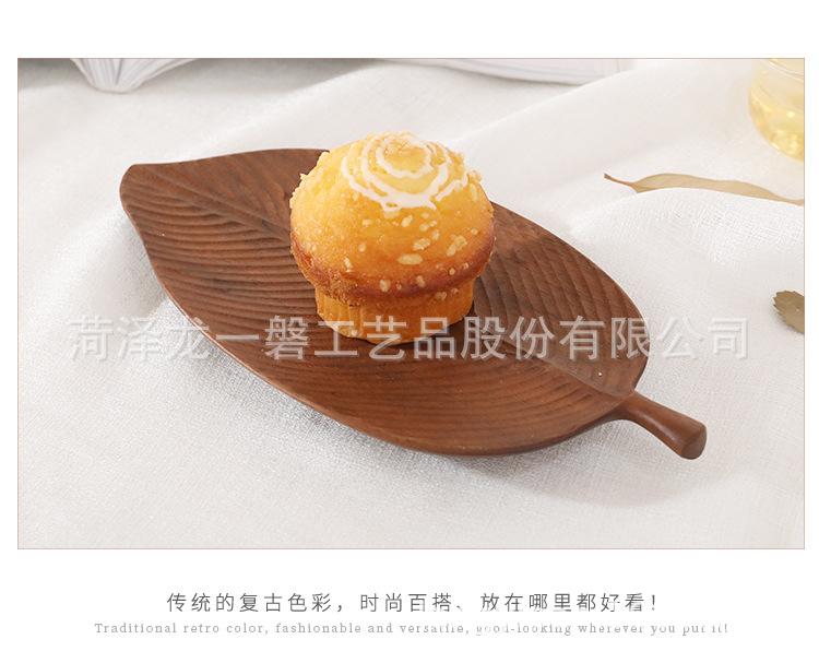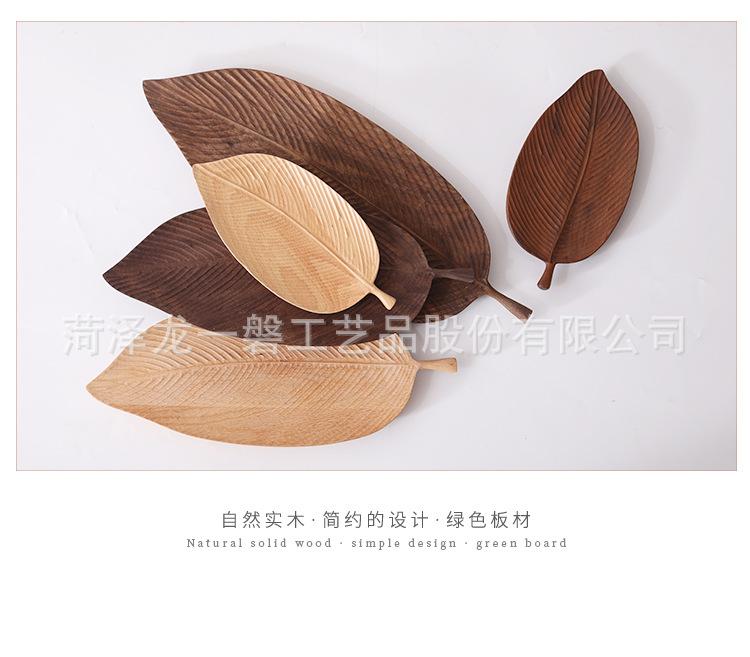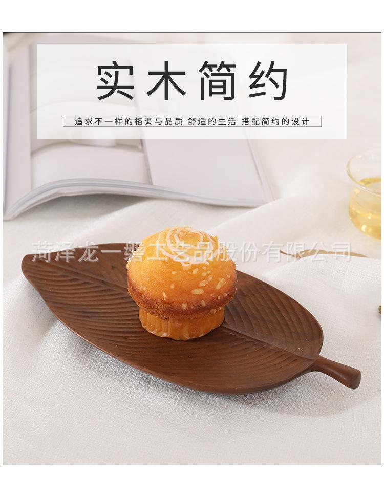 Plato de madera de nogal negro, hojas creativas, plato para aperitivos, plato de madera para frutas, plato de cena de madera maciza de estilo japonés, bandeja para taza de té