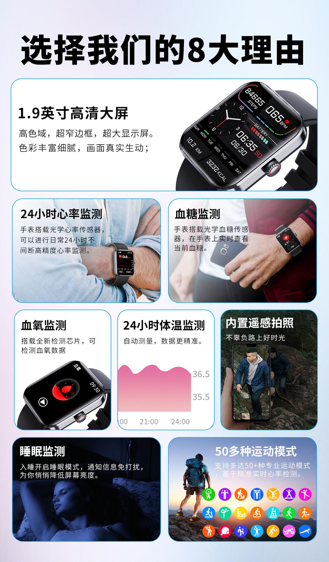 Soporte Oem Odmf57L Reloj Inteligente Transfronterizo Monitoreo de Azúcar en Sangre Frecuencia Cardíaca Oxígeno en Sangre Personalización de Fabricante Deportivo