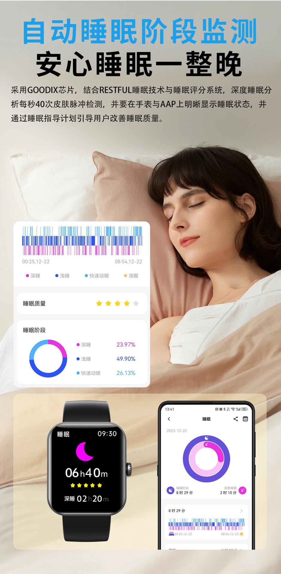 Step counting, Heart rate monitoring, Blood pressure measurement, Smart Reminder, Sleep monitoring, Information Push