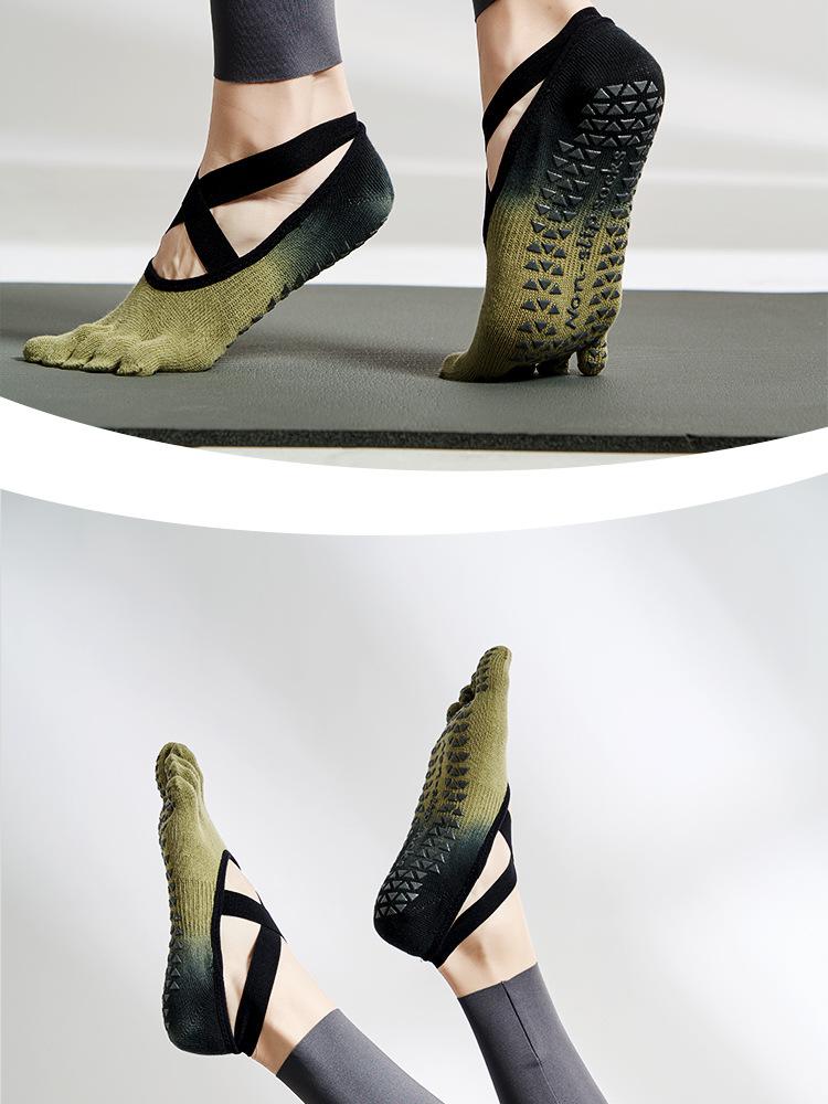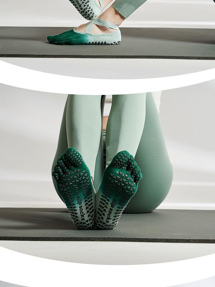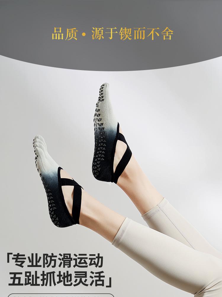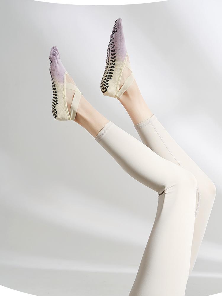Nuevos Calcetines de Yoga con Lazo Degradado, Calcetines Profesionales Antideslizantes de Cinco Dedos para Mujer, Calcetines de Pilates, Calcetines Deportivos de Invierno con Dedos Separados