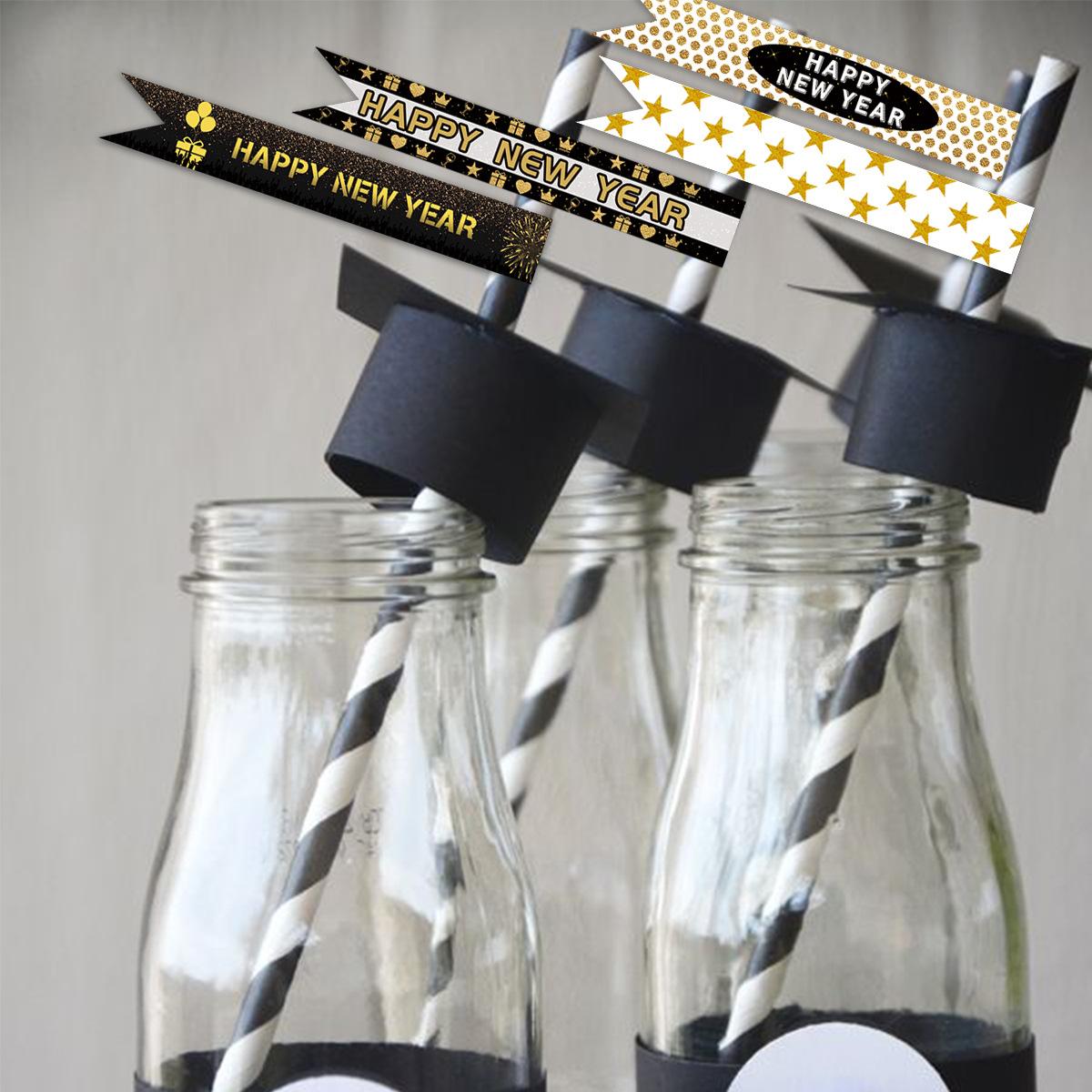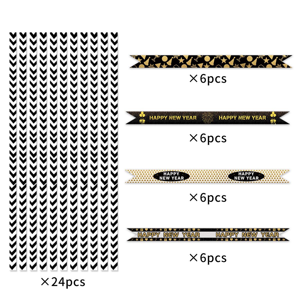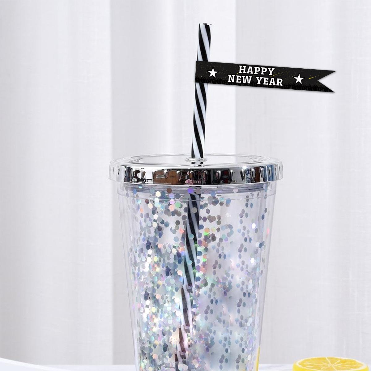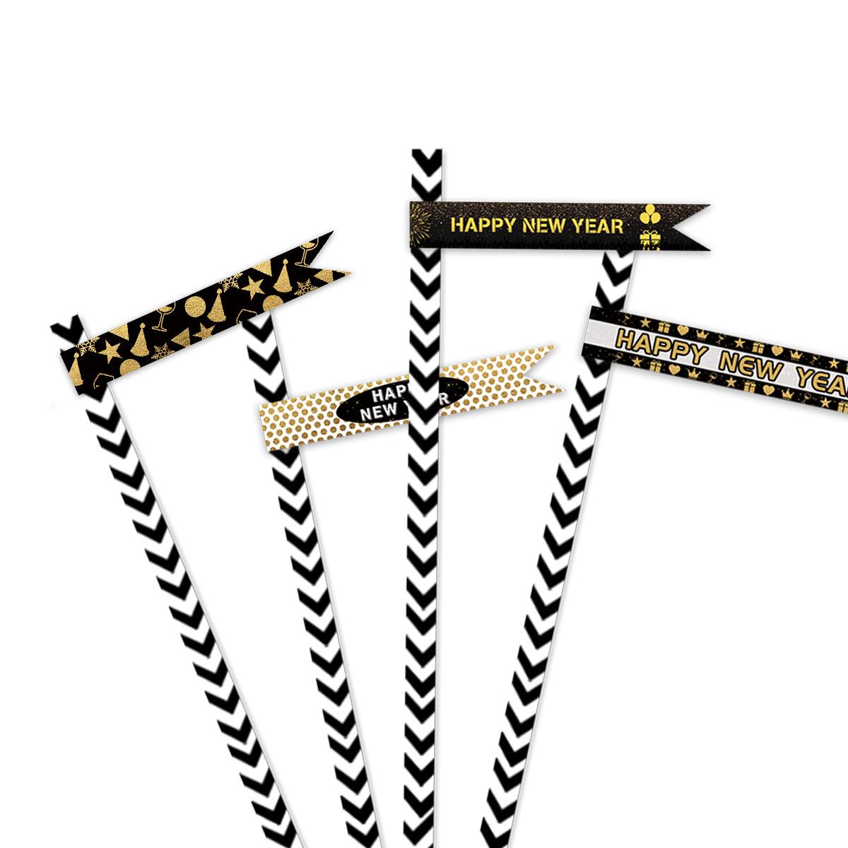 Pegatinas de pajita de Año Nuevo 2024 transfronterizas Amazon oro negro decoraciones de fiesta 24 por juego pegatinas de pajita al por mayor