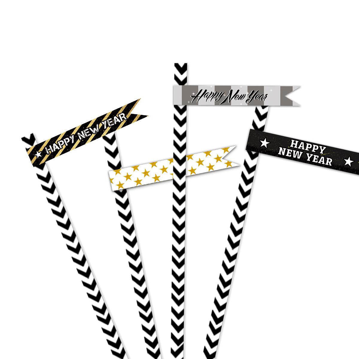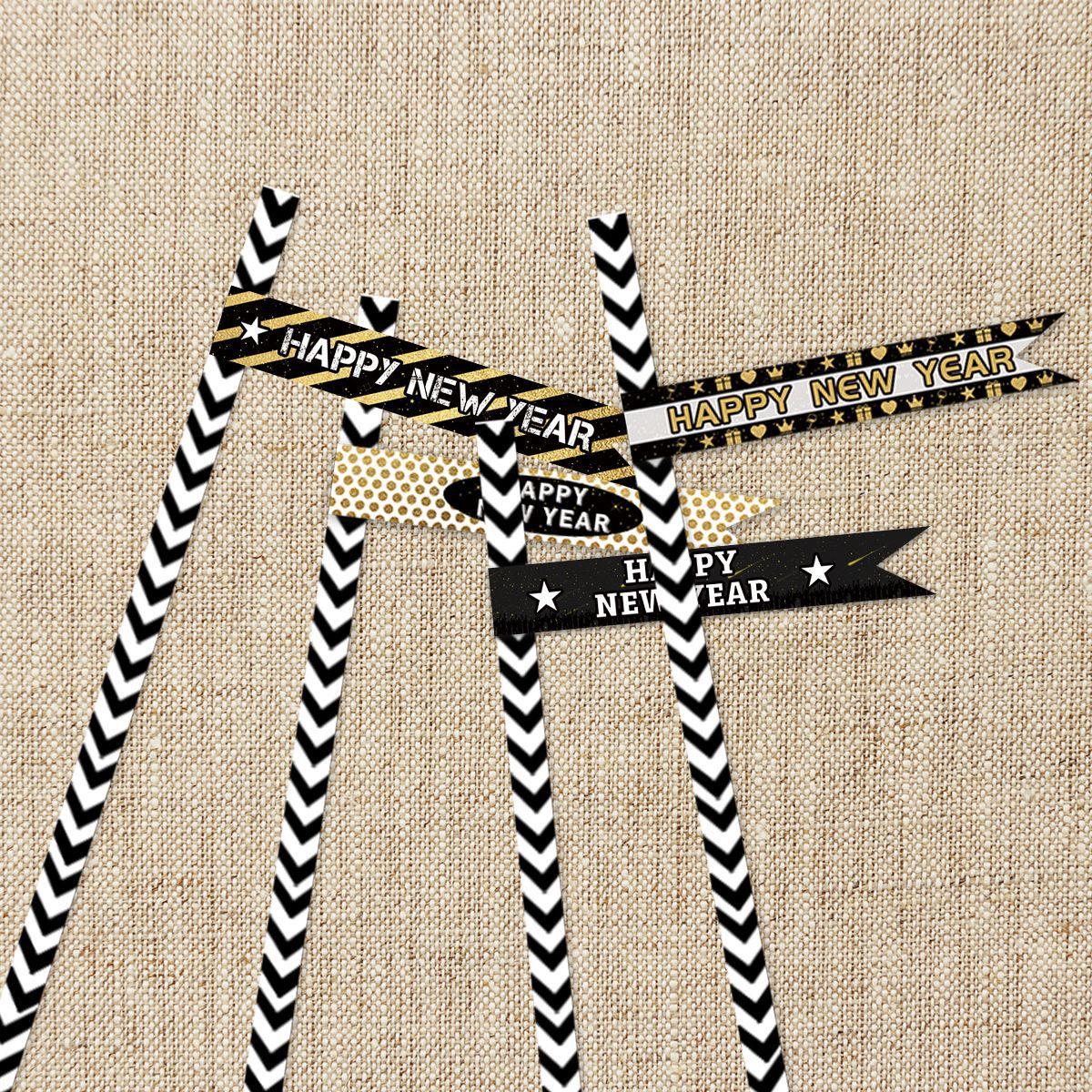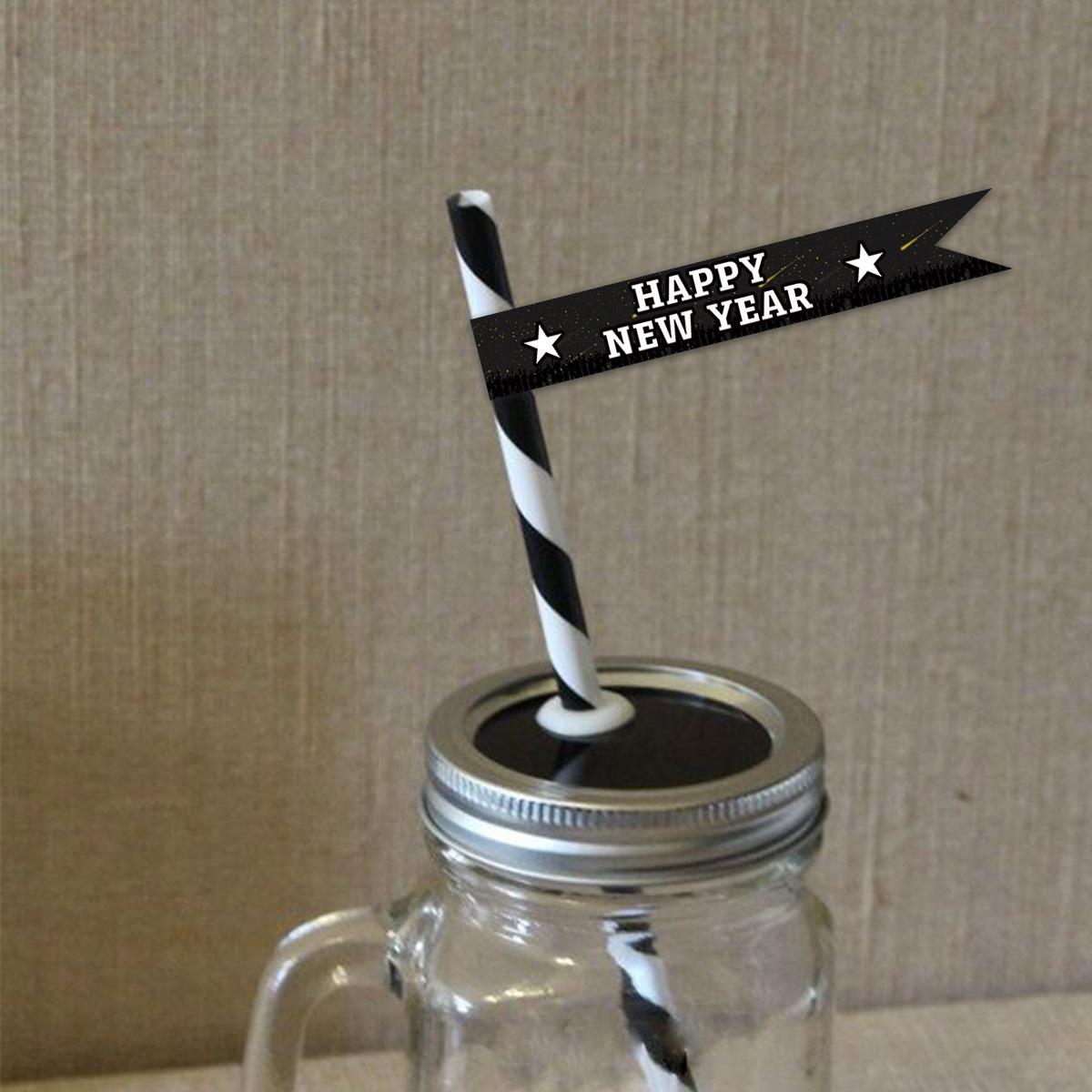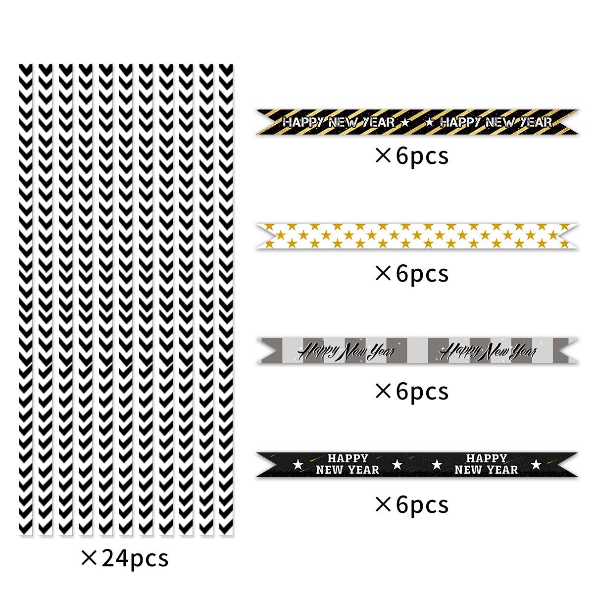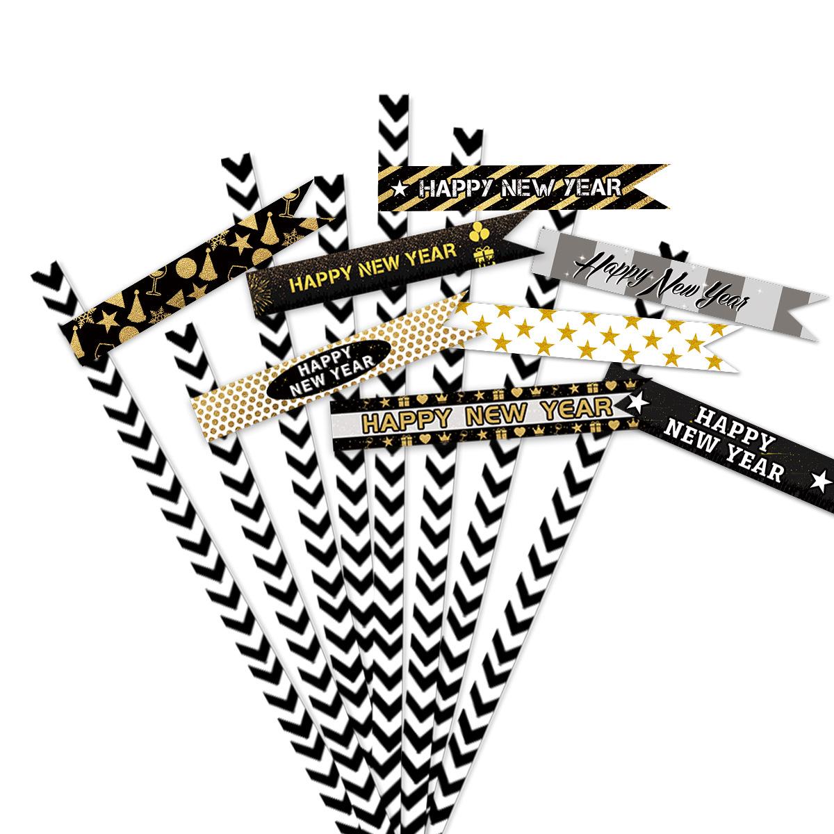 Pegatinas de pajita de Año Nuevo 2024 transfronterizas Amazon oro negro decoraciones de fiesta 24 por juego pegatinas de pajita al por mayor