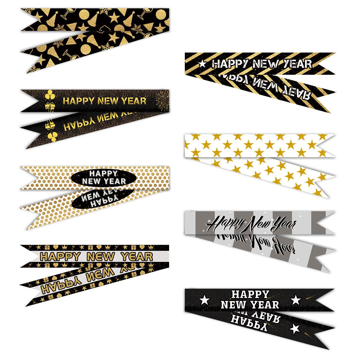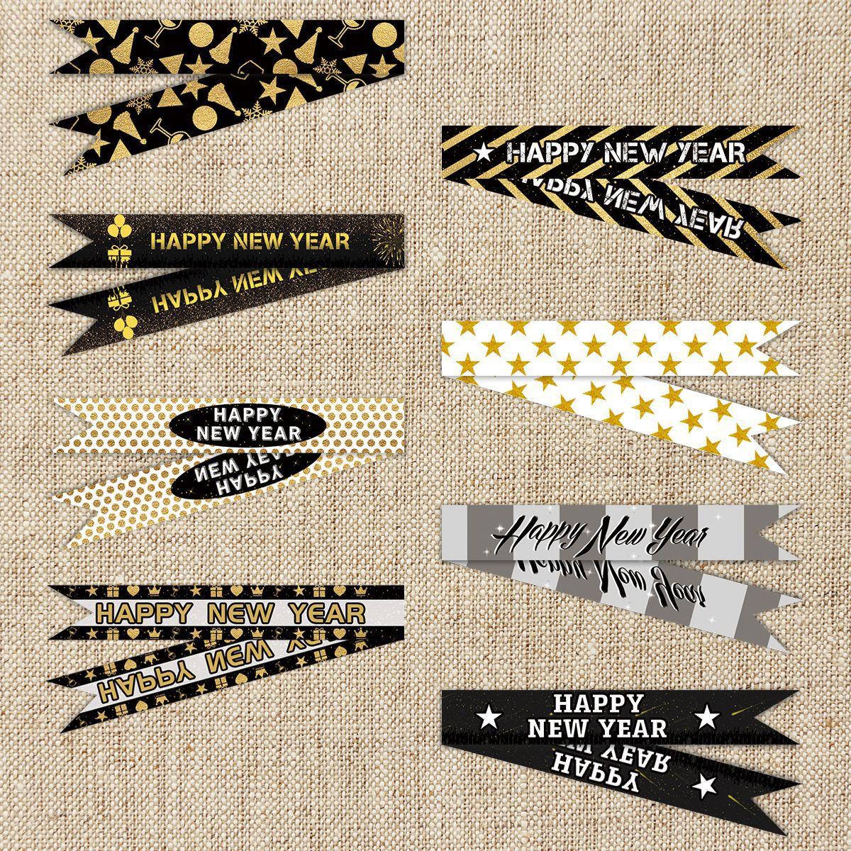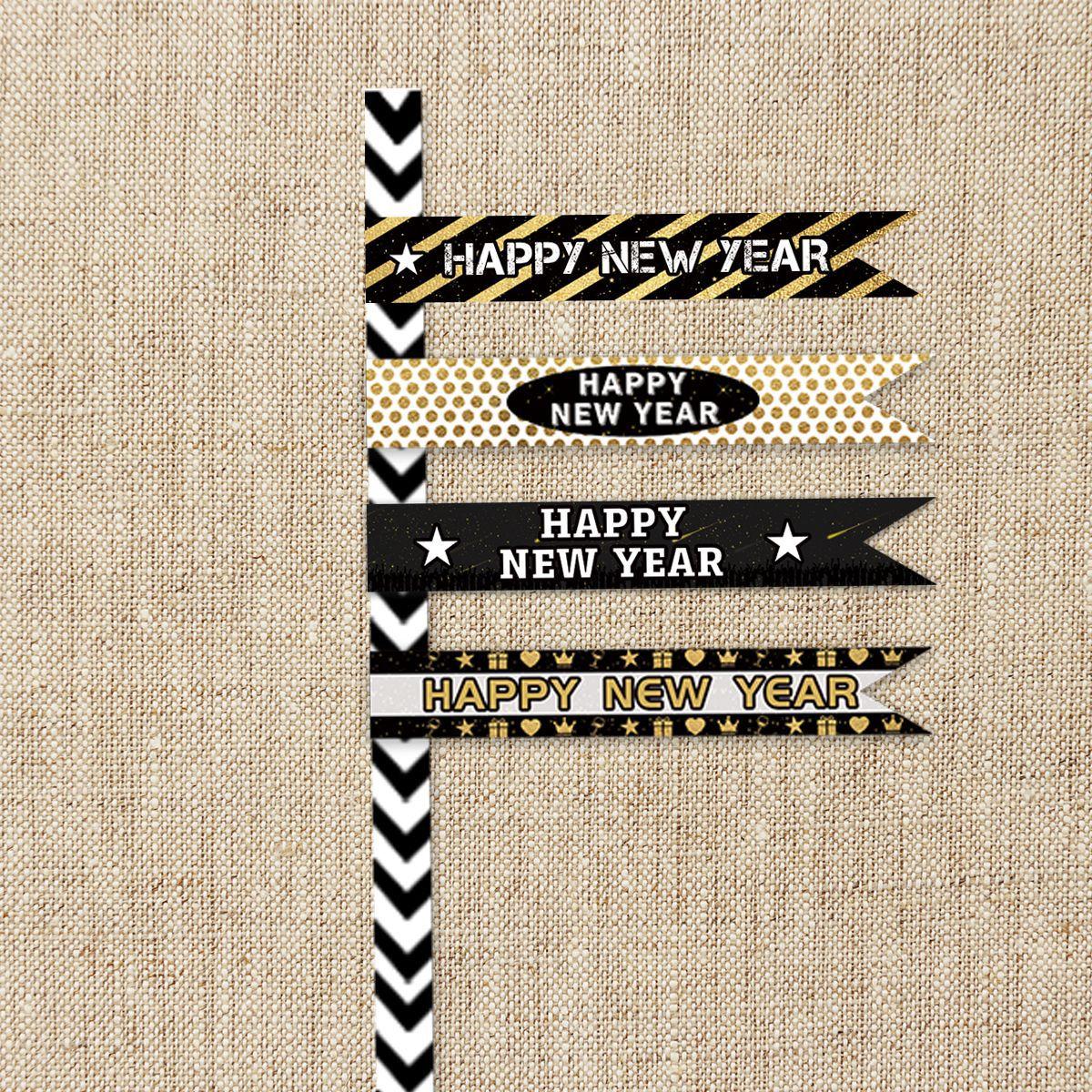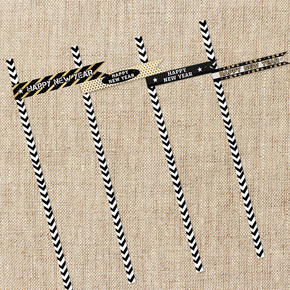Pegatinas de pajita de Año Nuevo 2024 transfronterizas Amazon oro negro decoraciones de fiesta 24 por juego pegatinas de pajita al por mayor
