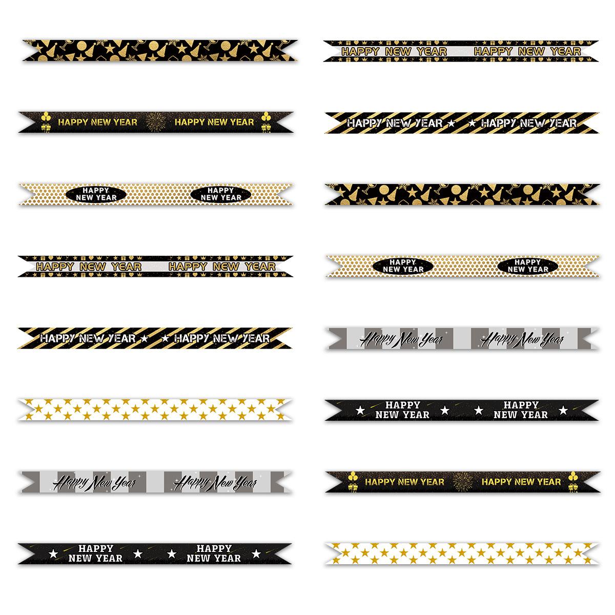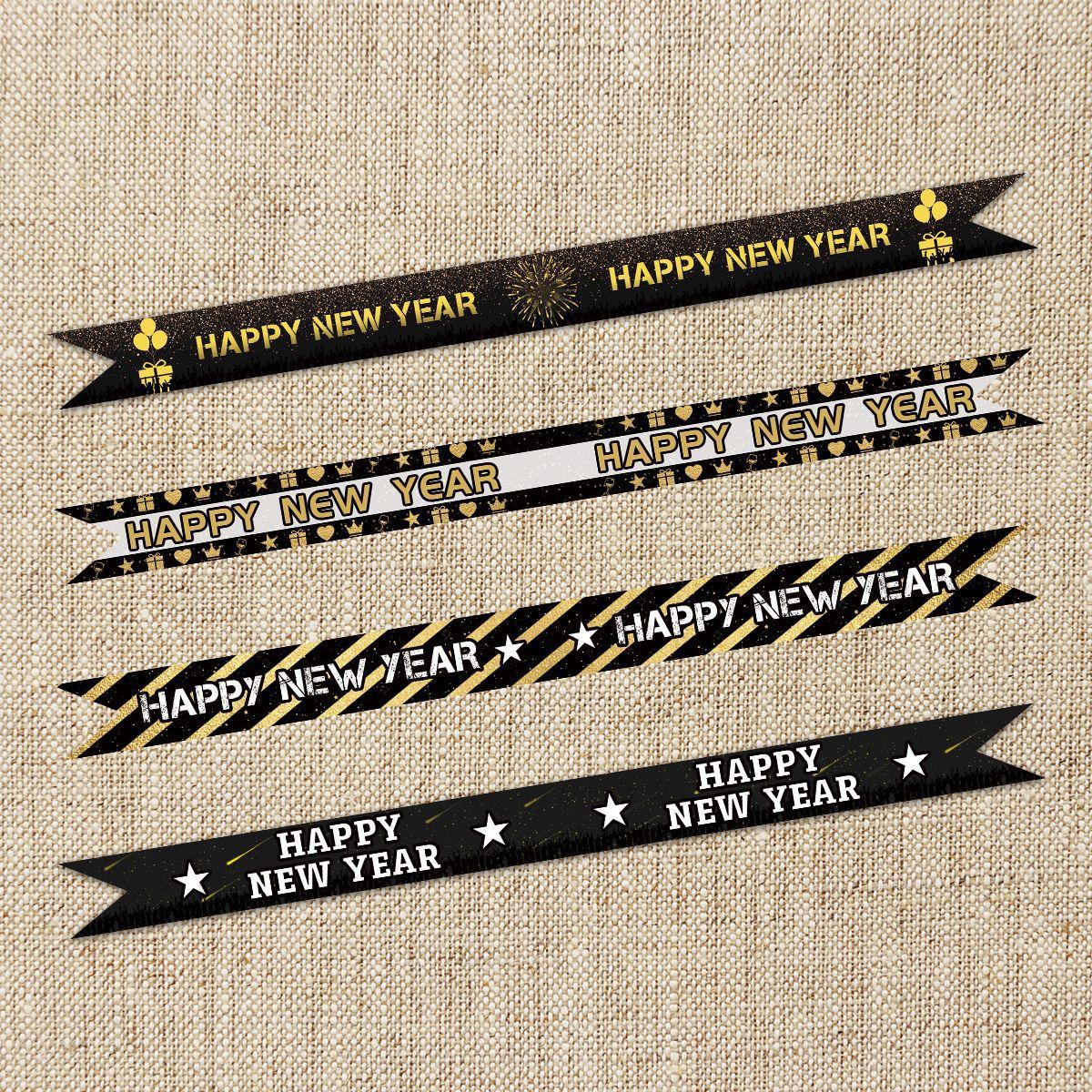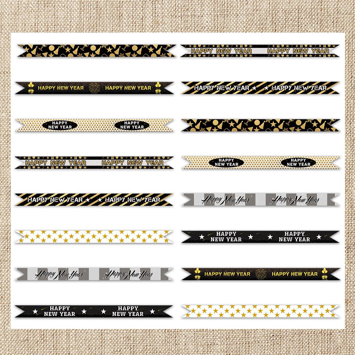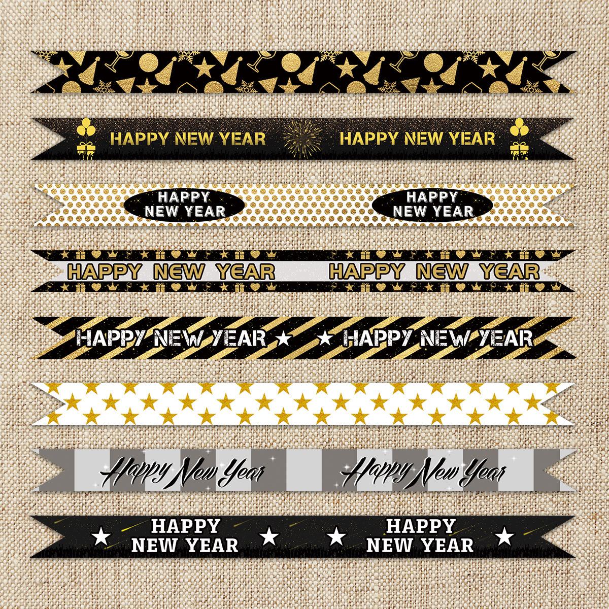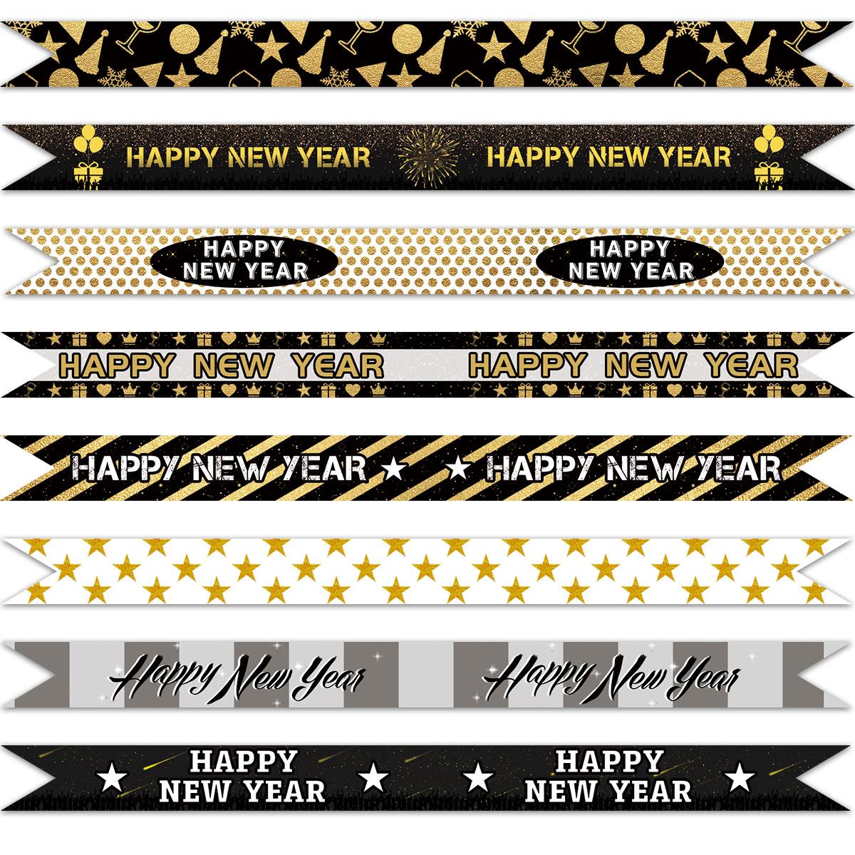 Pegatinas de pajita de Año Nuevo 2024 transfronterizas Amazon oro negro decoraciones de fiesta 24 por juego pegatinas de pajita al por mayor