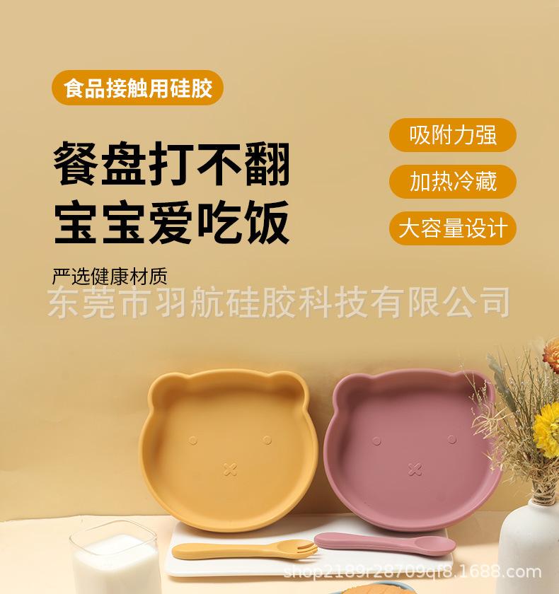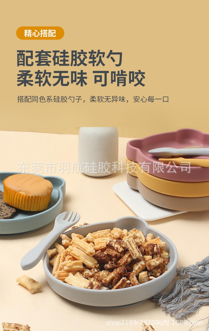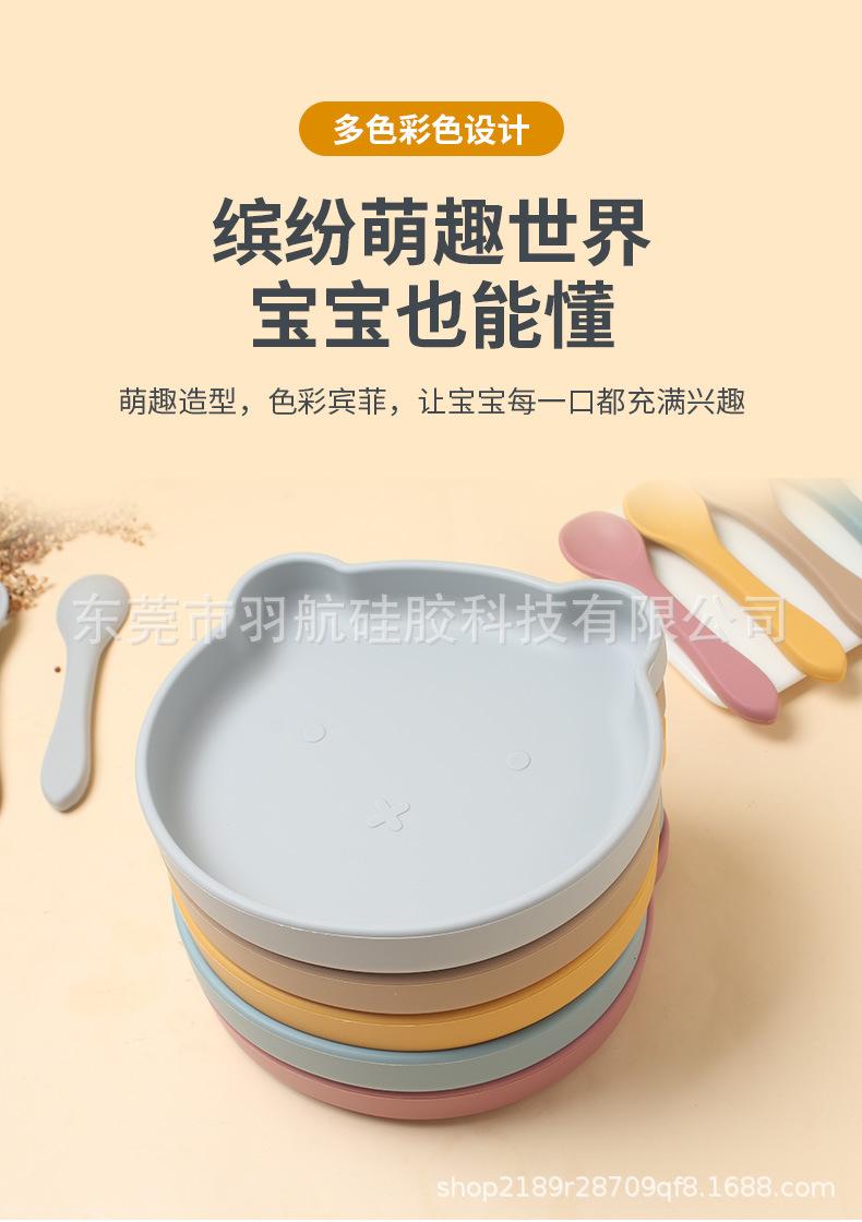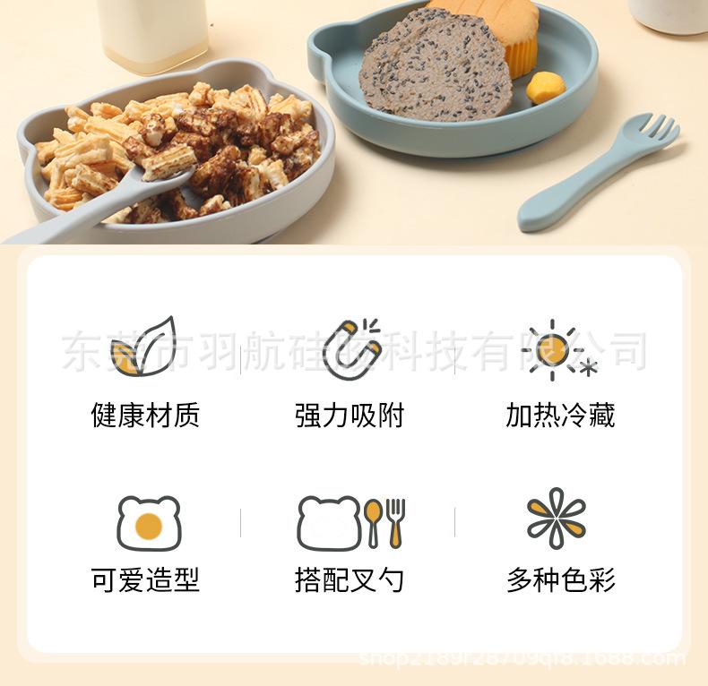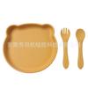 Plato de Cena de Silicona de Oso Set de Vajilla Complementaria para Comida de Bebé Cuchara Tenedor de Silicona Suministros para Bebé Set de Vajilla de Silicona para Niños